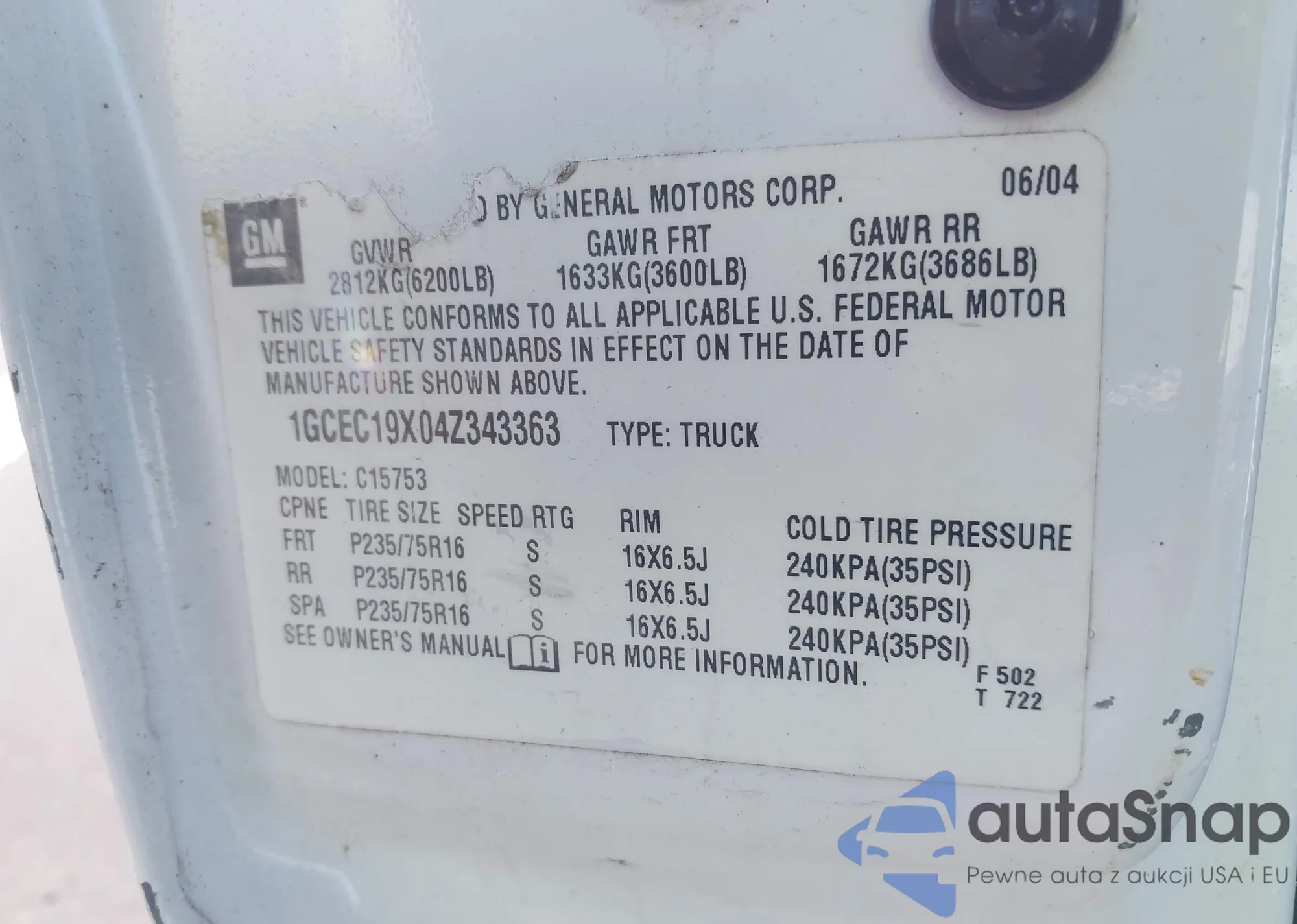 • VIN 1GCEC19X04Z343363