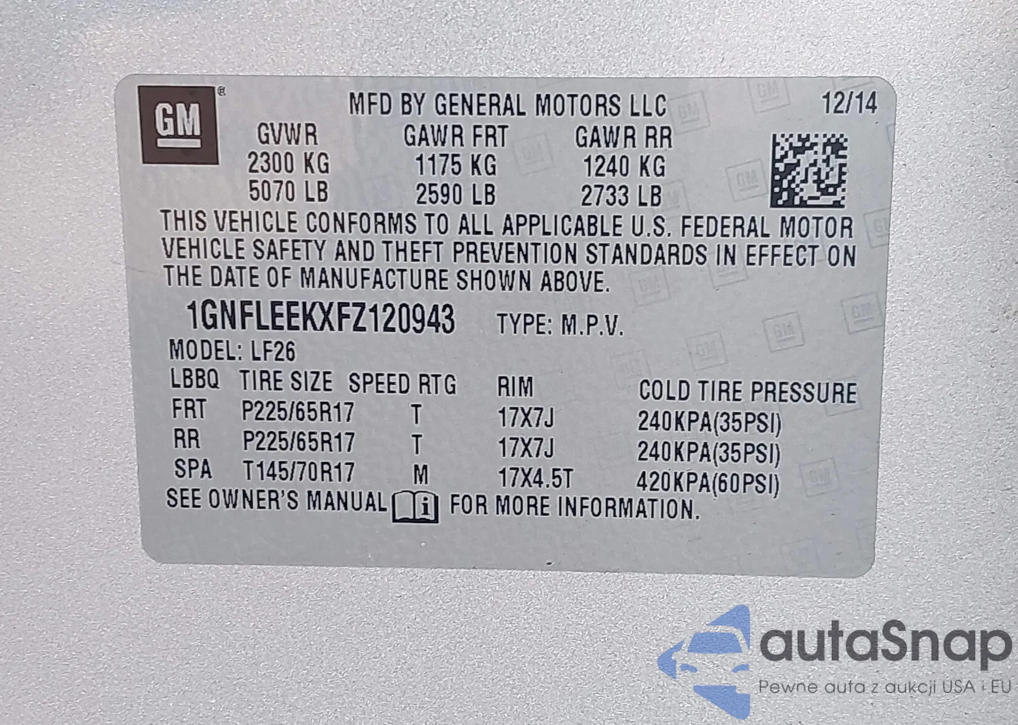 LOT: 43998794 VIN: 1GNFLEEKXFZ120943