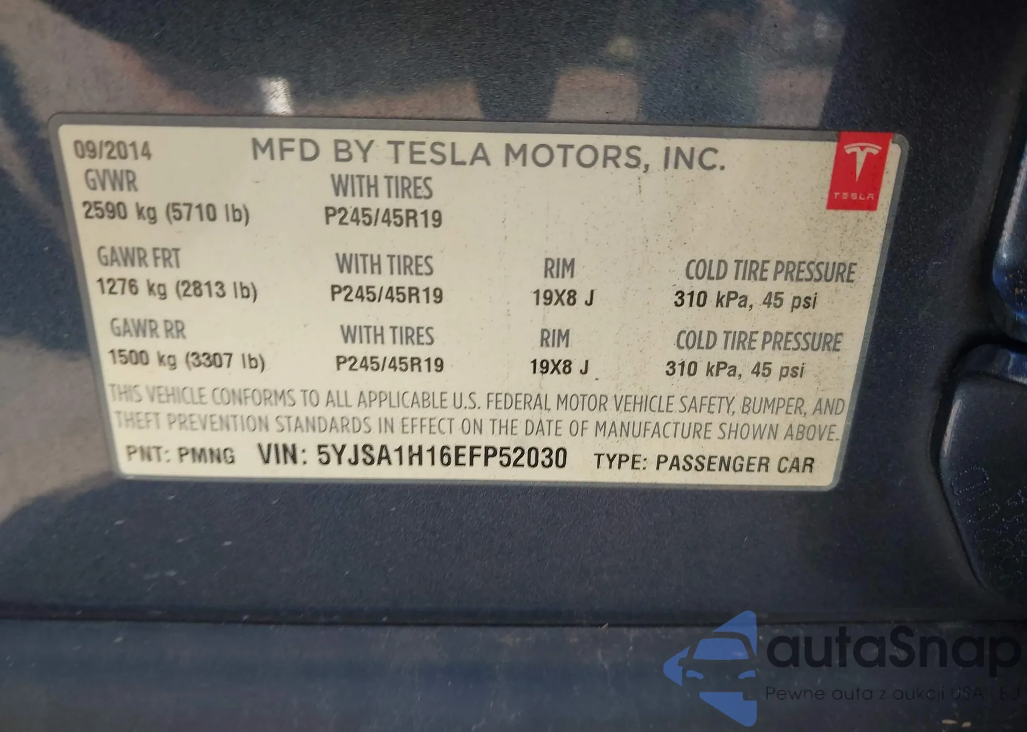 • VIN 5YJSA1H16EFP52030