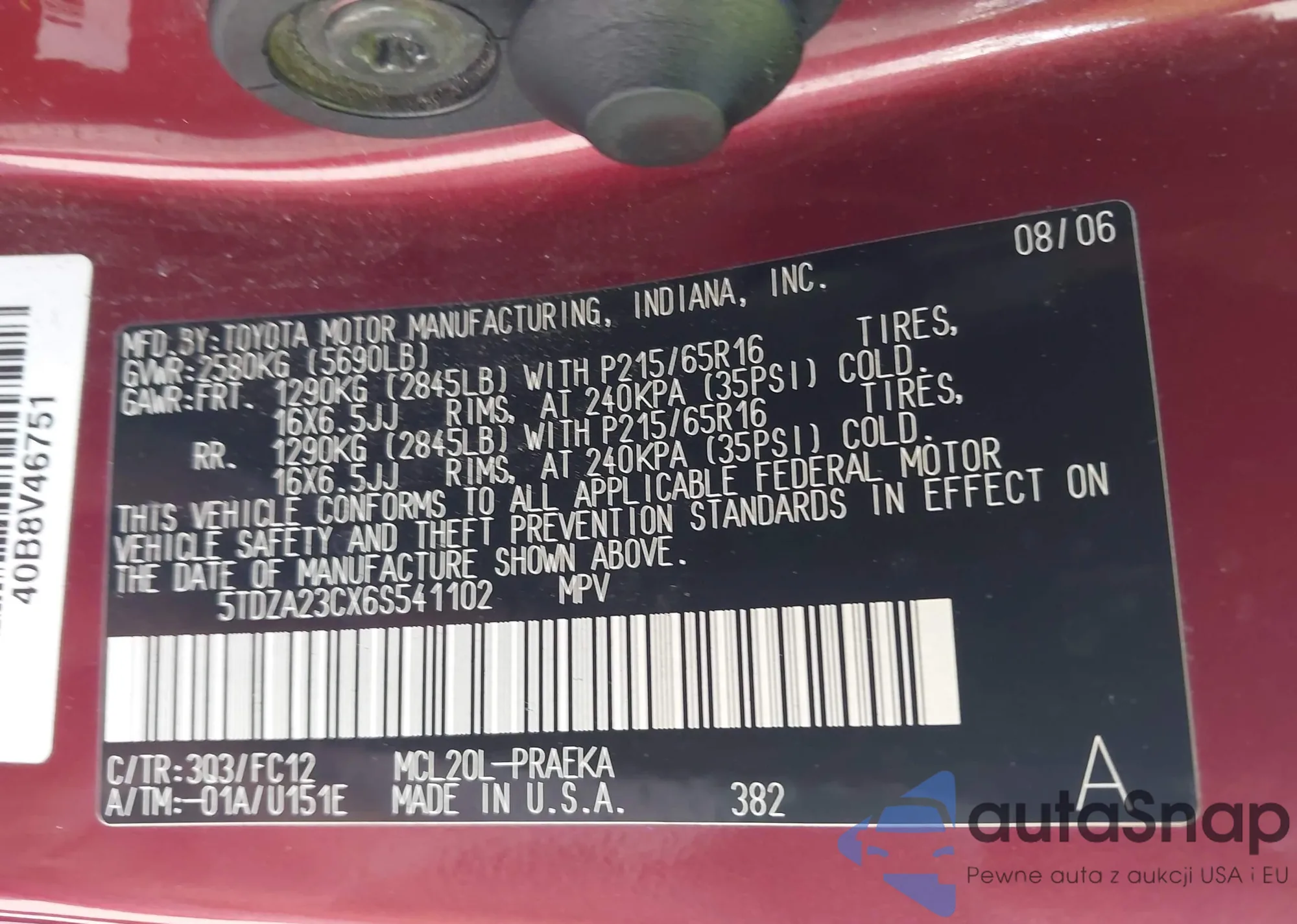 • VIN 5TDZA23CX6S541102