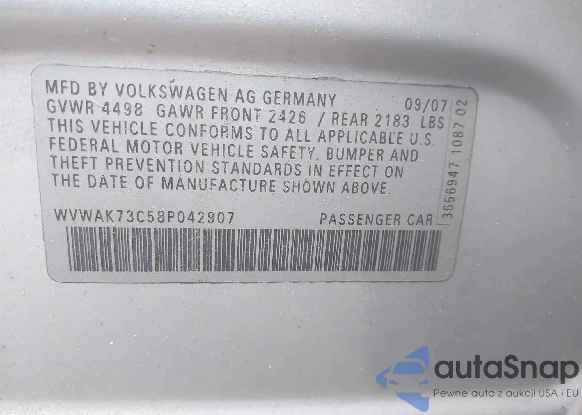 • VIN WVWAK73C58P042907