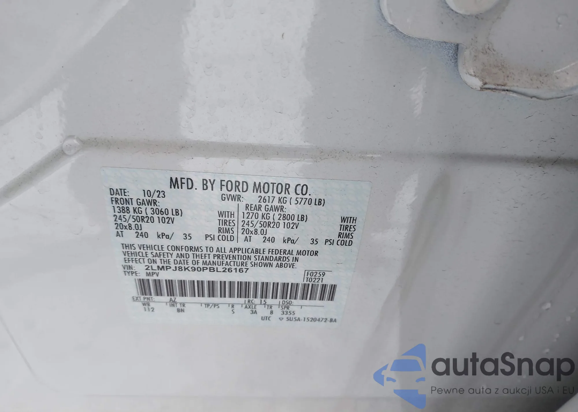 LOT: 43990103 VIN: 2LMPJ8K90PBL26167