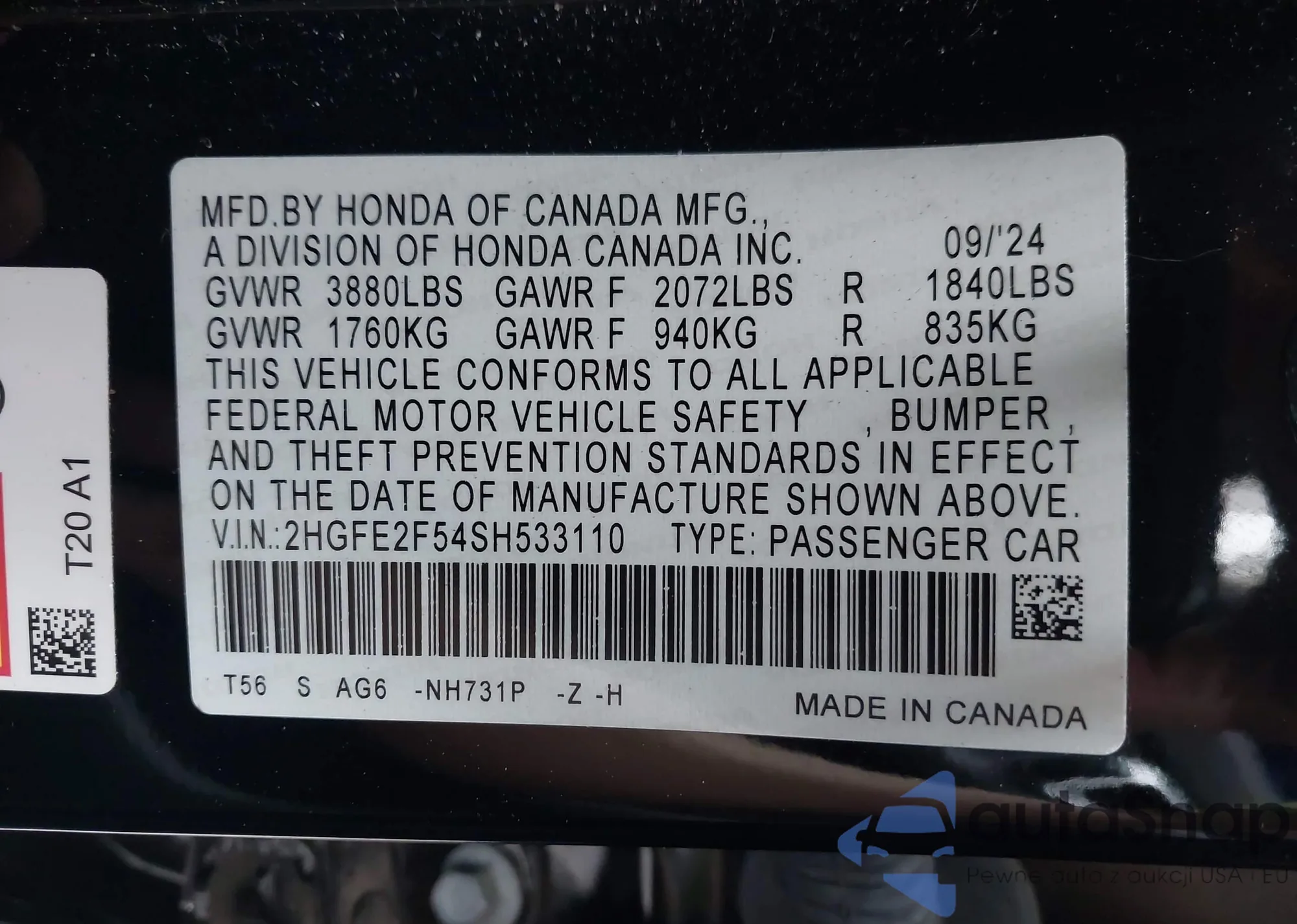 • VIN 2HGFE2F54SH533110