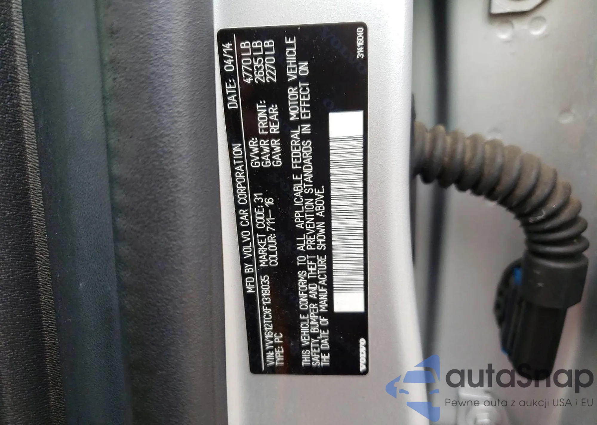 LOT: 73276915 VIN: YV1612TCXF1318035
