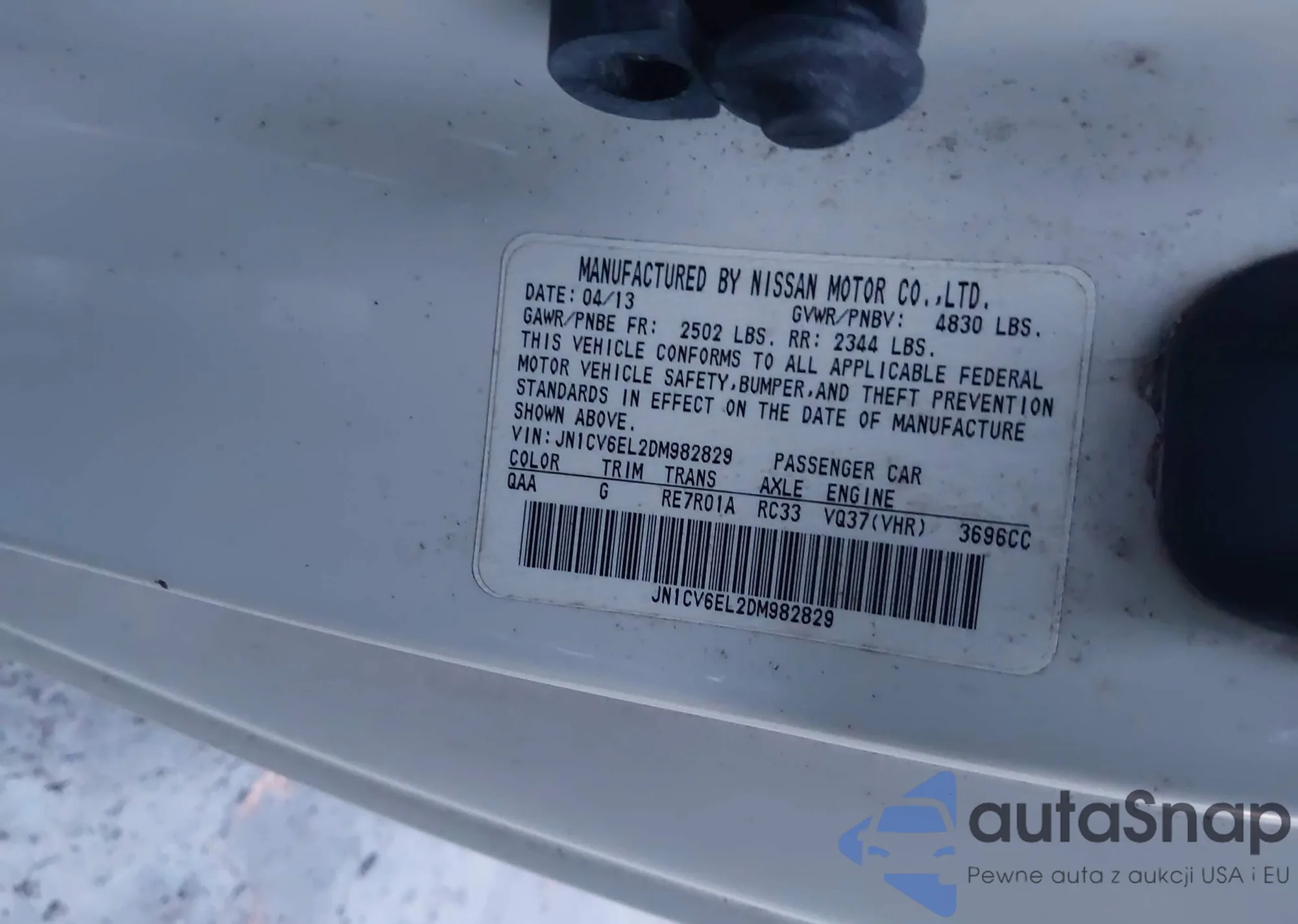 LOT: 43936242 VIN: JN1CV6EL2DM982829