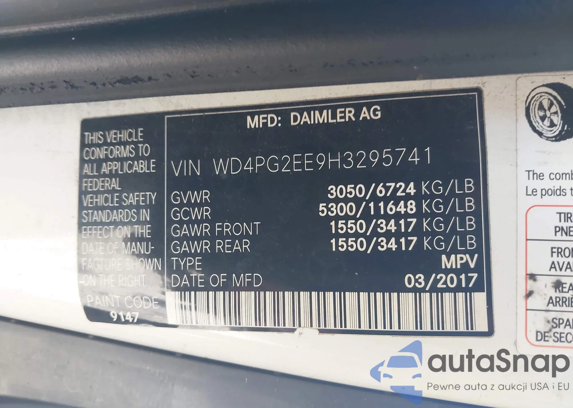 LOT: 43981242 VIN: WD4PG2EE9H3295741