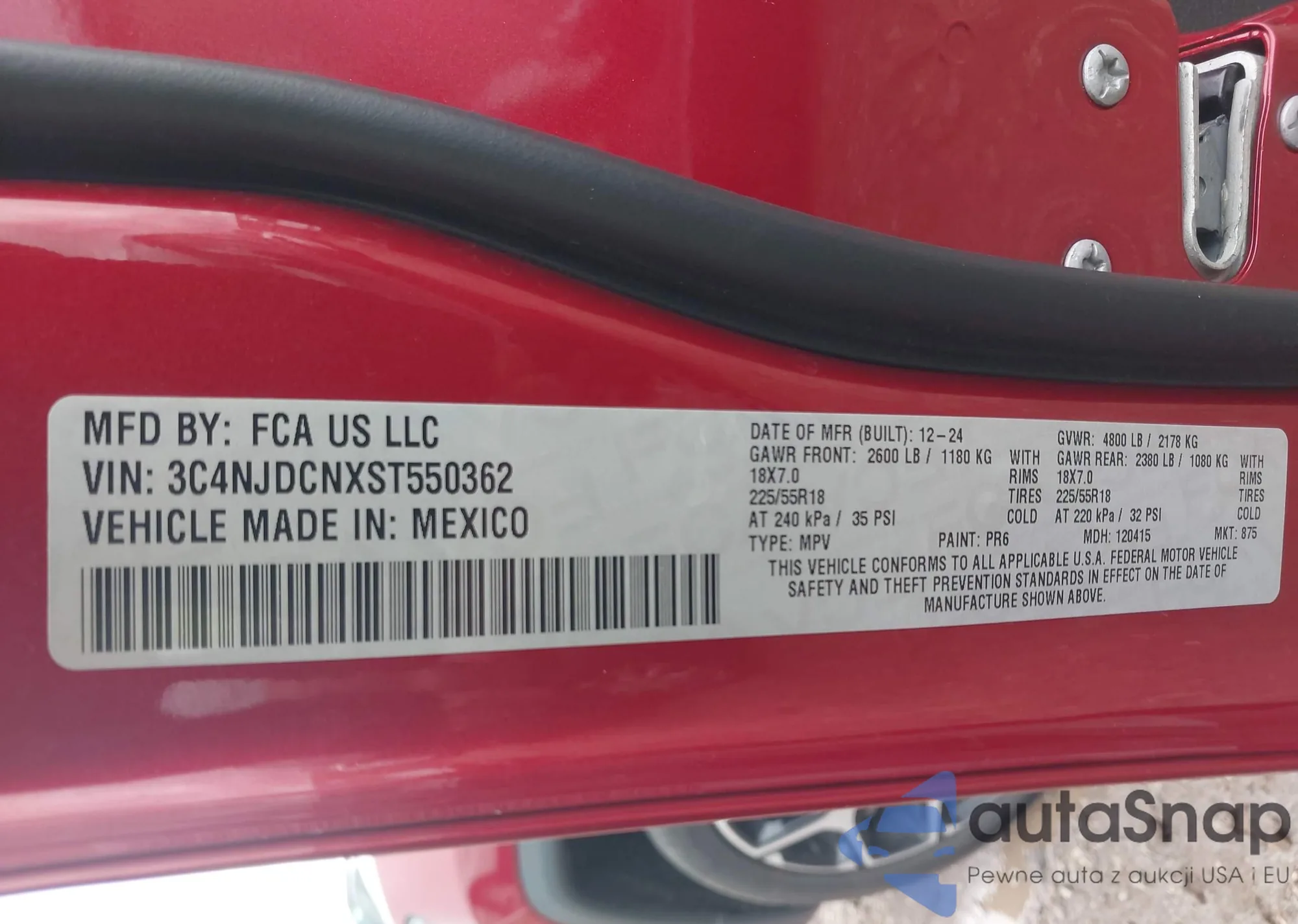 LOT: 44158145 VIN: 3C4NJDCNXST550362