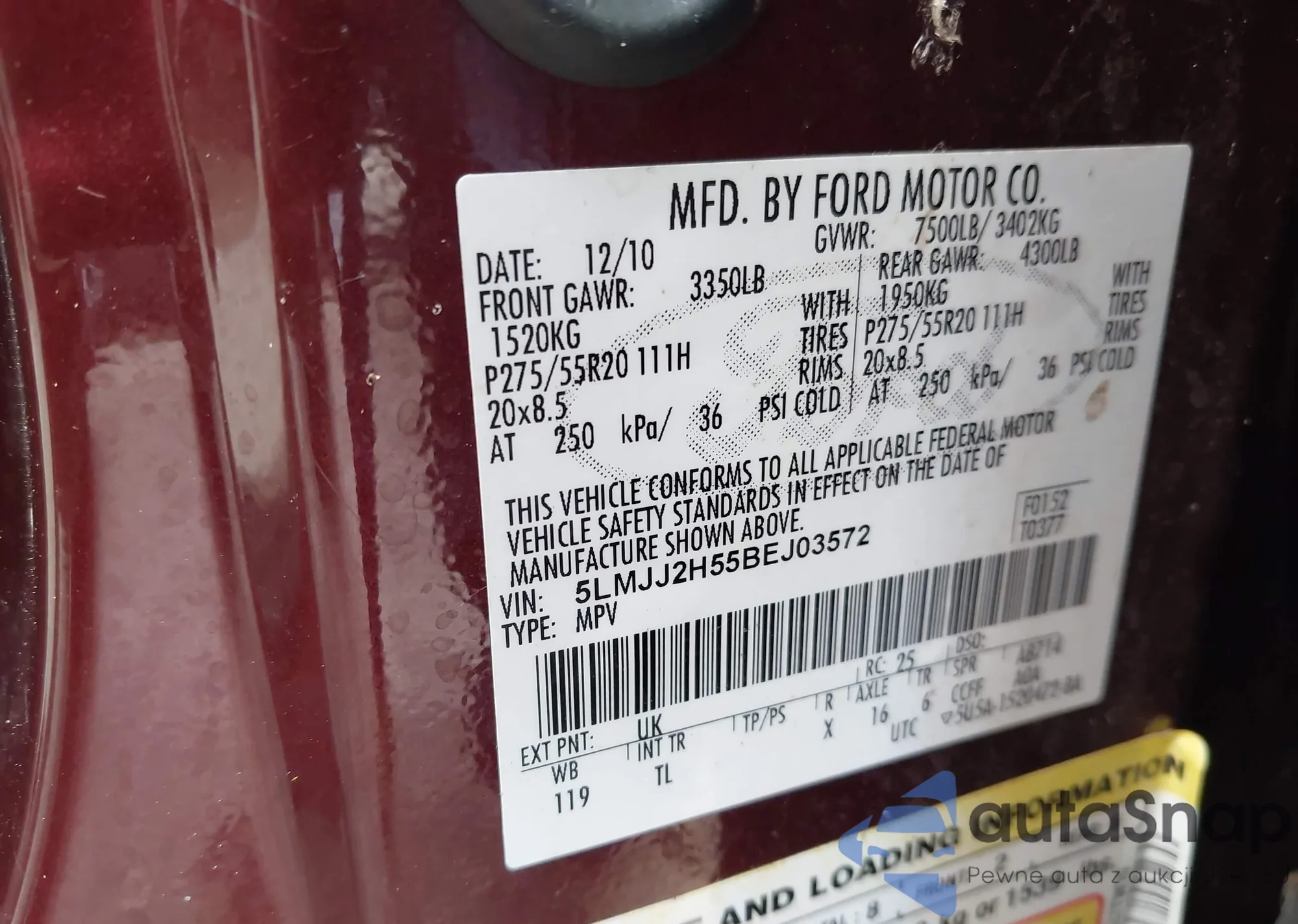 • VIN 5LMJJ2H55BEJ03572