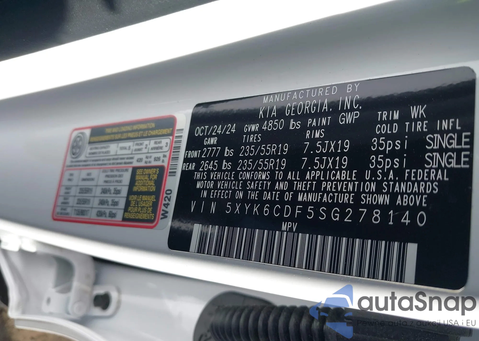 • VIN 5XYK6CDF5SG278140
