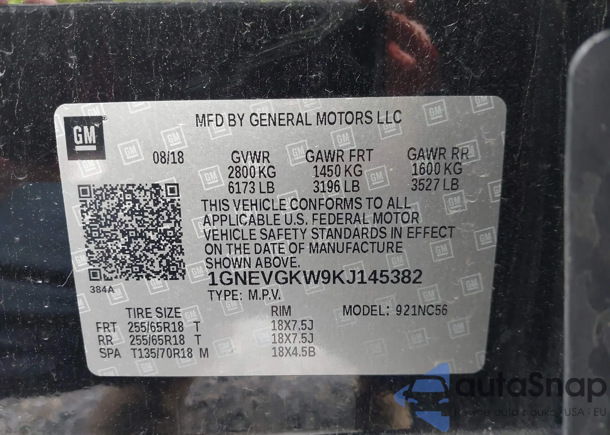 LOT: 44113821 VIN: 1GNEVGKW9KJ145382