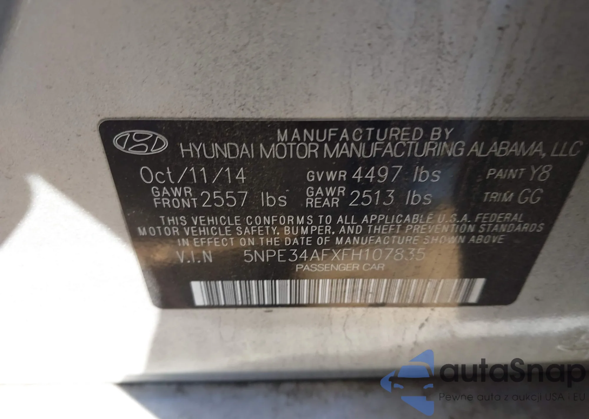 • VIN 5NPE34AFXFH107835