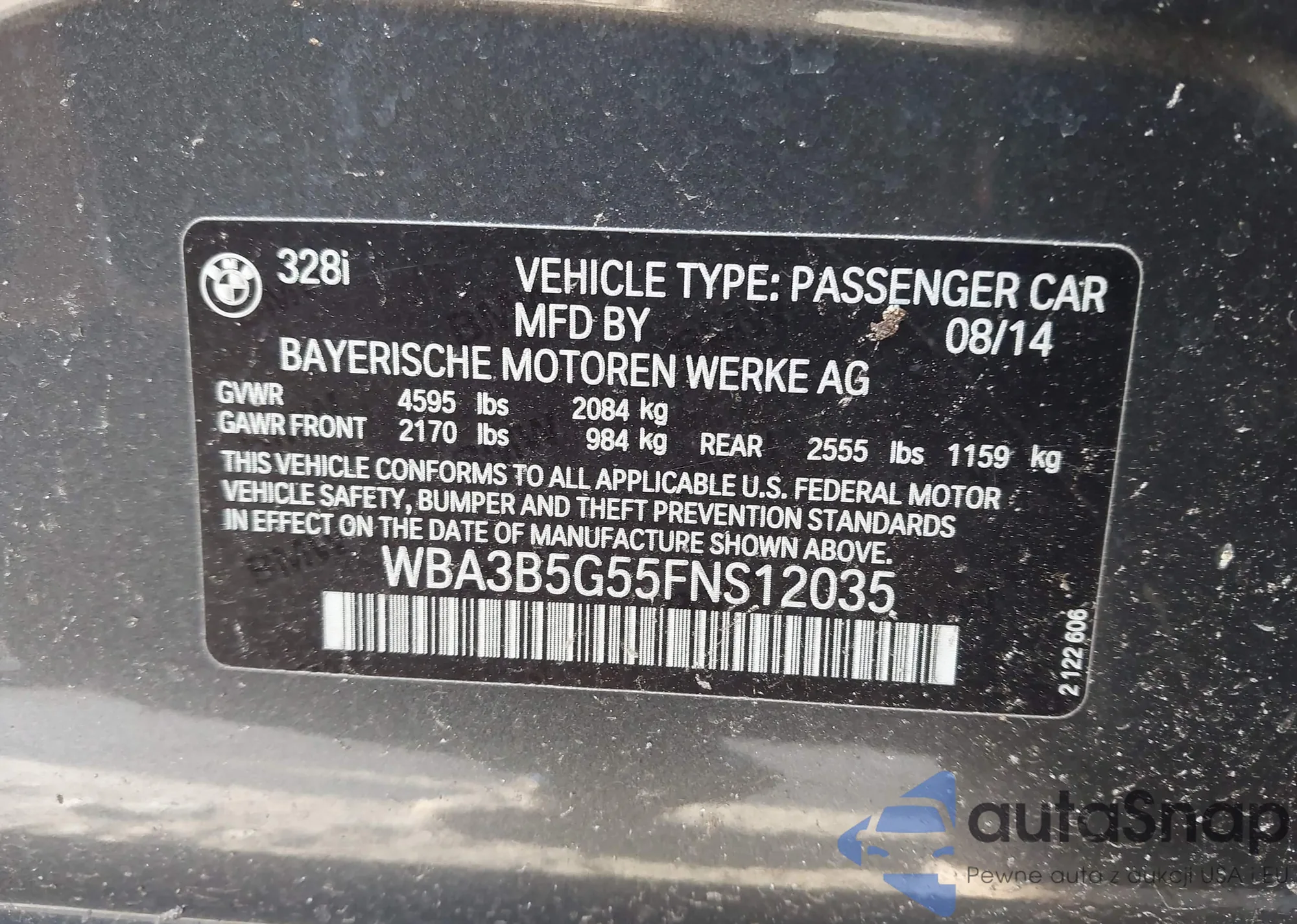 LOT: 43818569 VIN: WBA3B5G55FNS12035