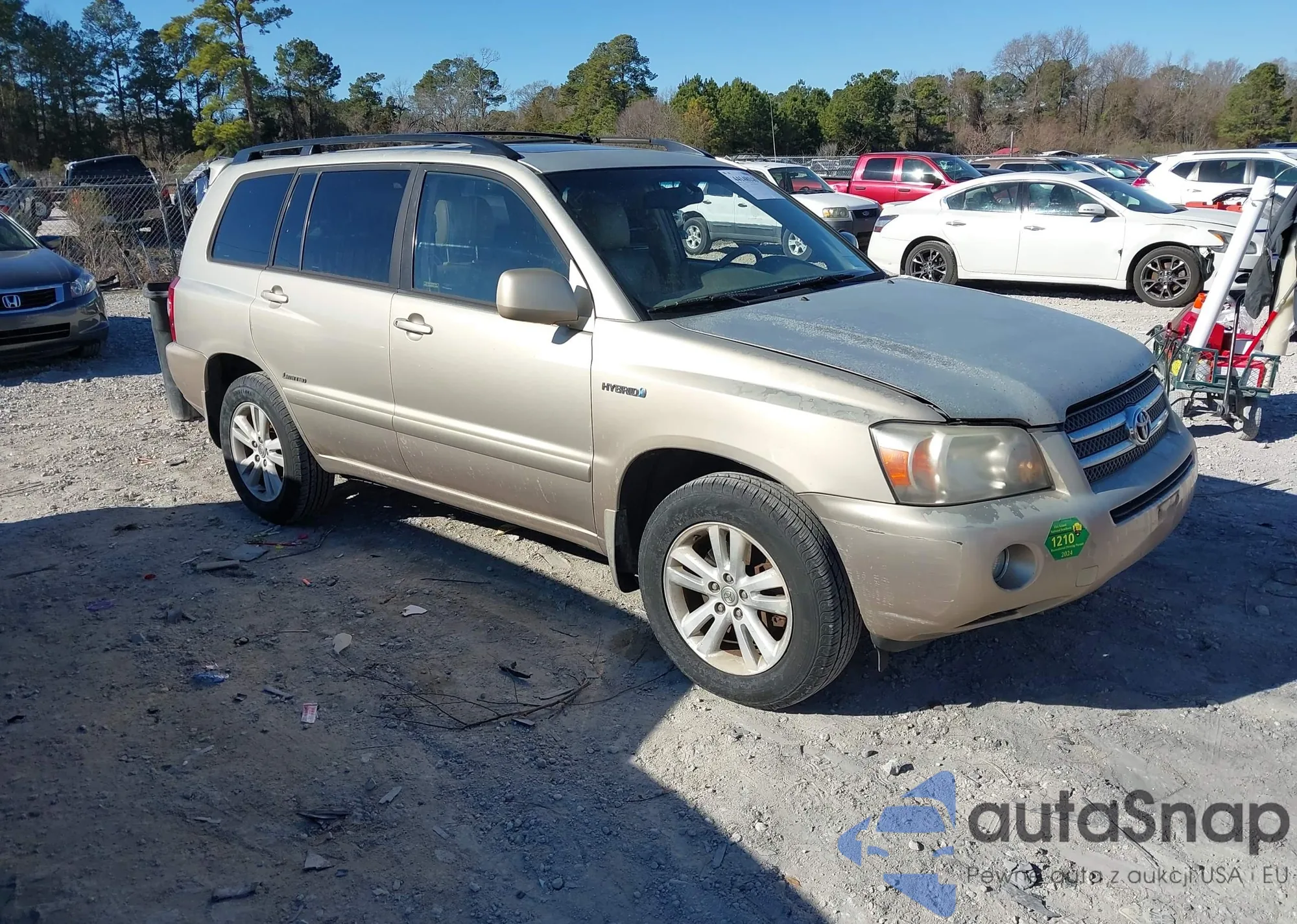 2006 Toyota Highlander Hybrid Limited V6 z USA, uszkodzony, nr VIN JTEEW21A360021033