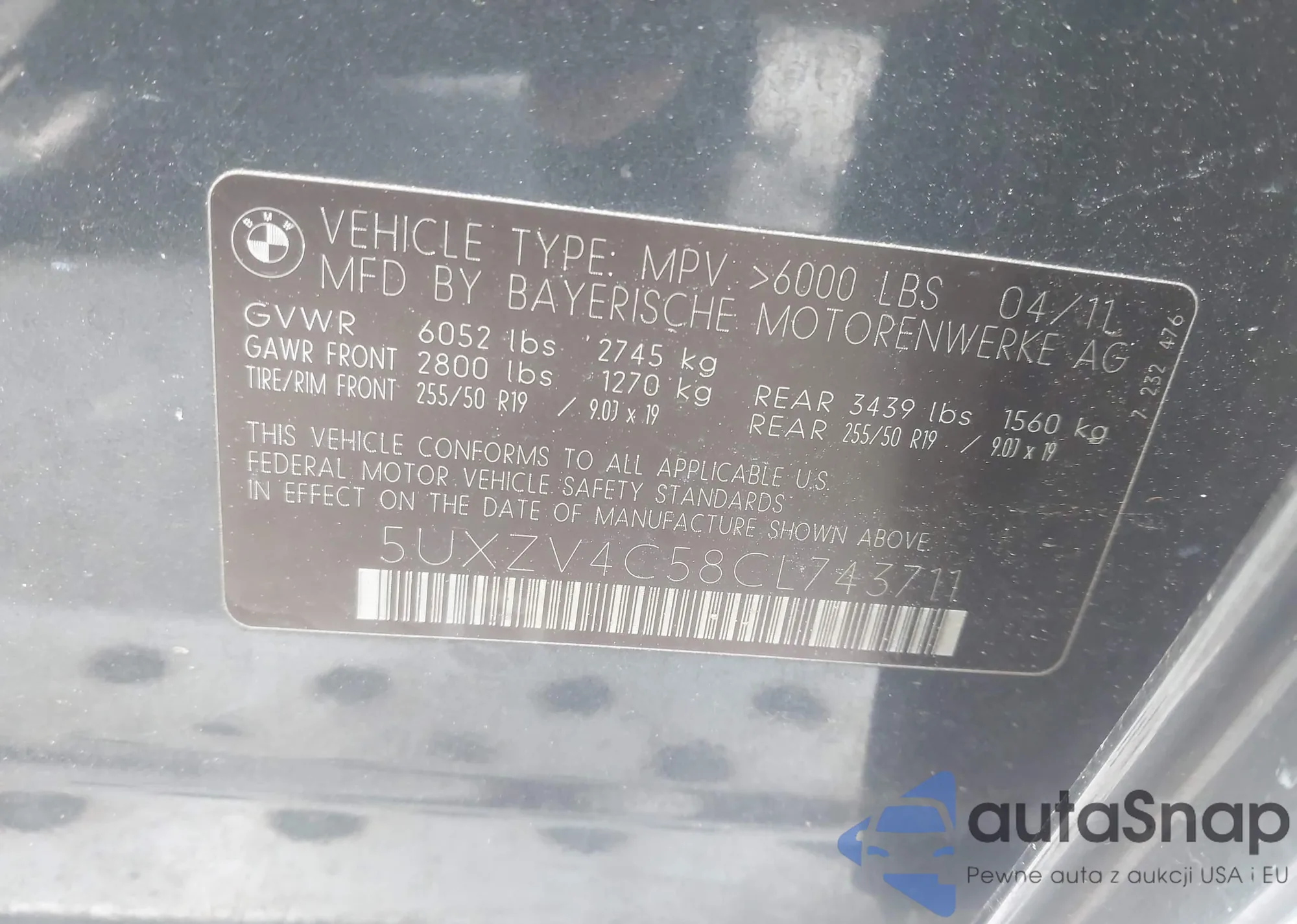 • VIN WBAPH7C50BE675180