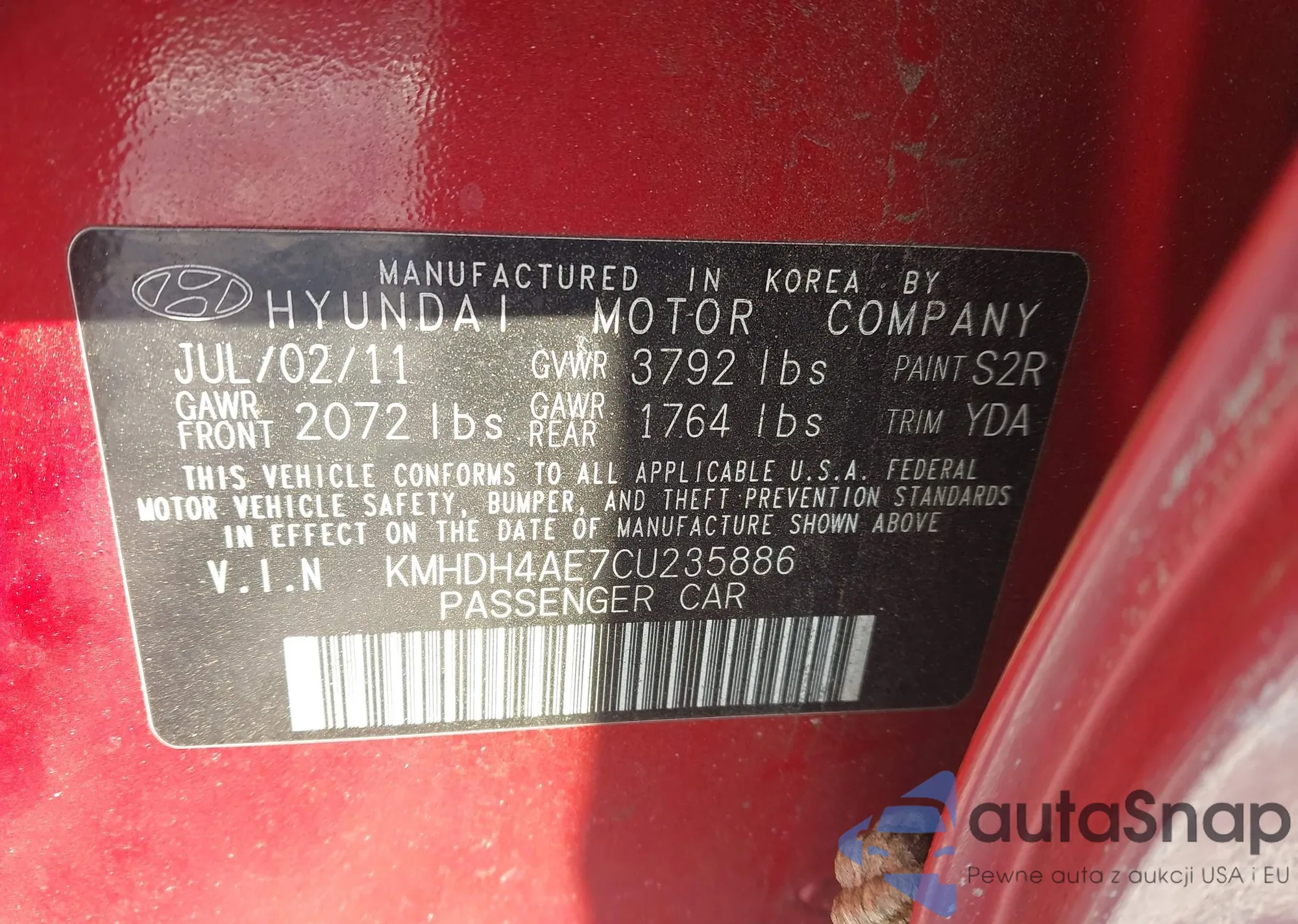 LOT: 43918292 VIN: KMHDH4AE7CU235886
