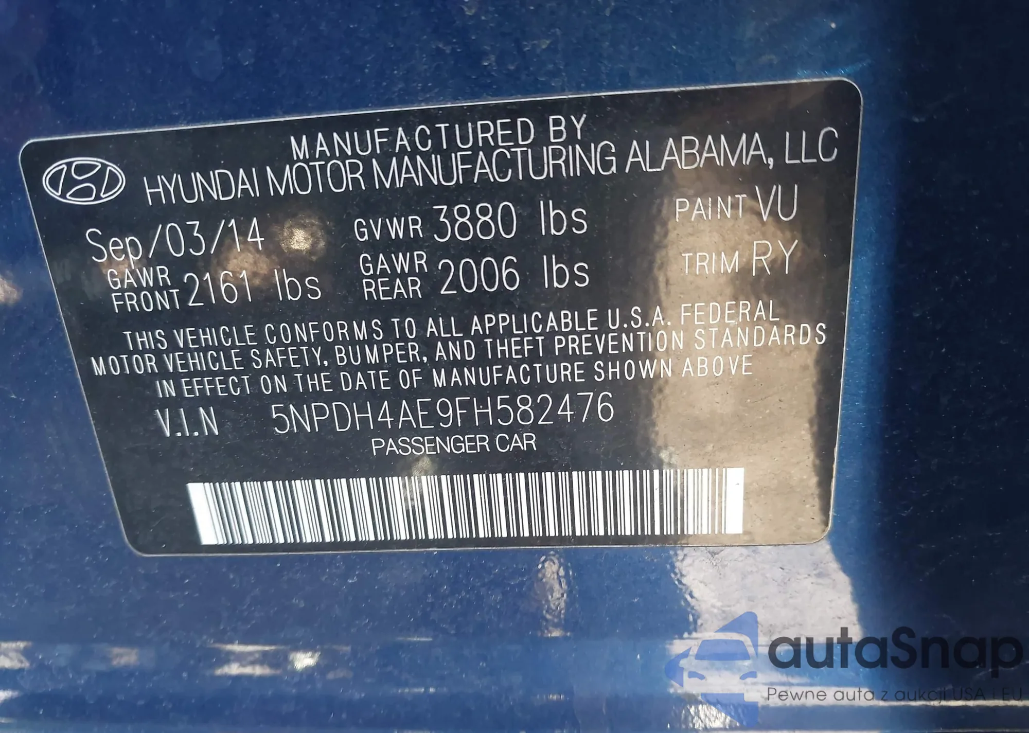 • VIN 5NPDH4AE9FH582476
