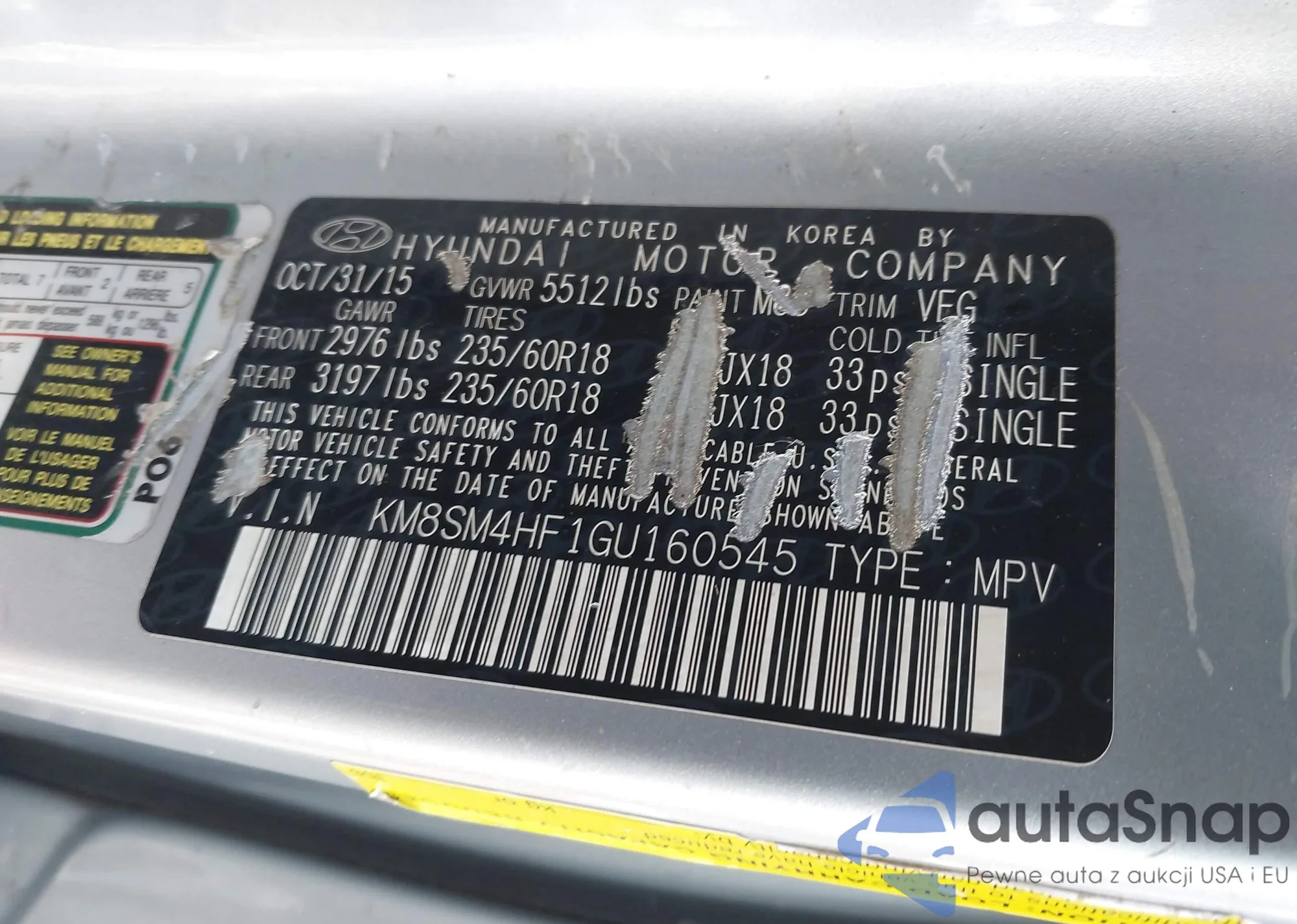 LOT: 44146522 VIN: 5NPDH4AE9FH582476