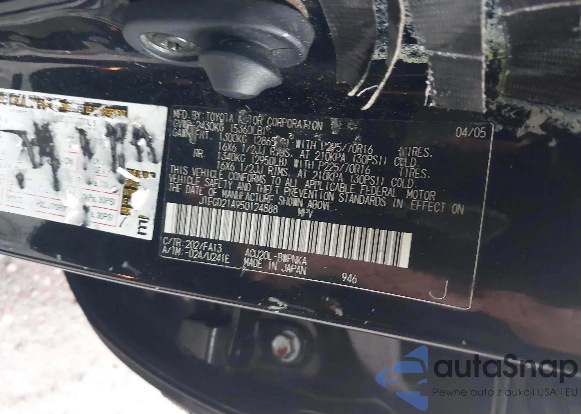 LOT: 44073260 VIN: JTEGD21A950124888