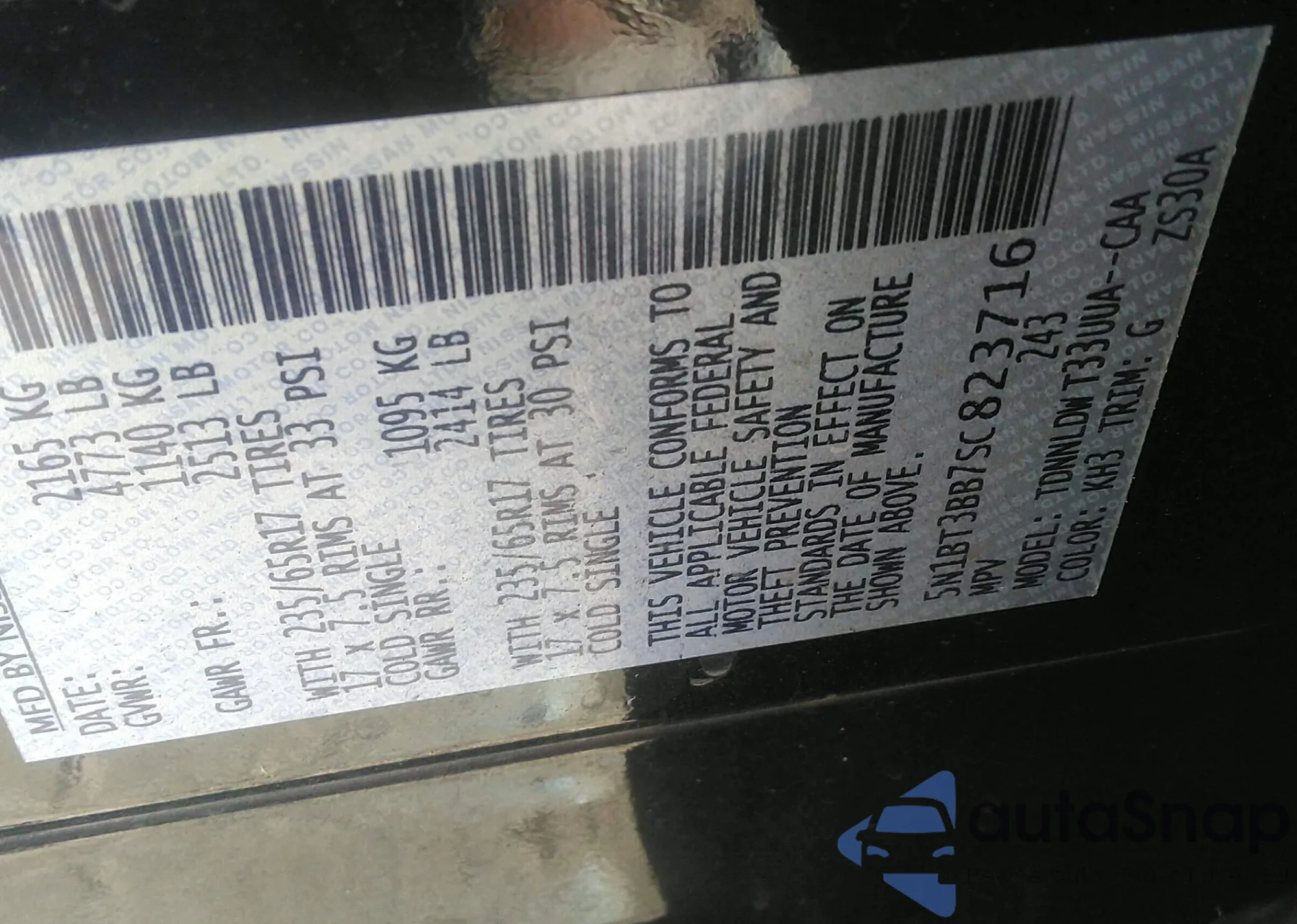 • VIN 5N1BT3BB7SC823716