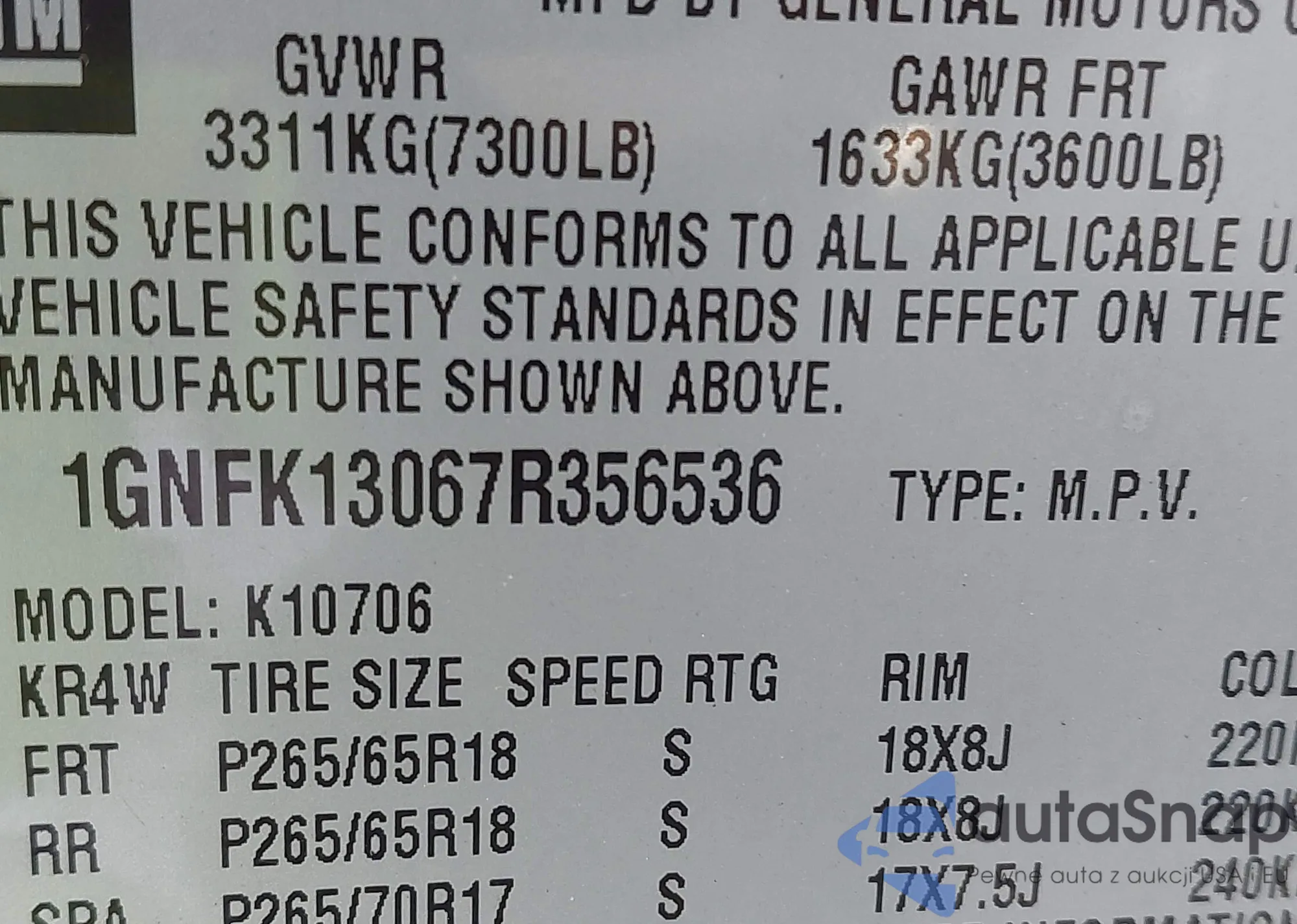 LOT: 43812862 VIN: 1GCVKREC7JZ265339