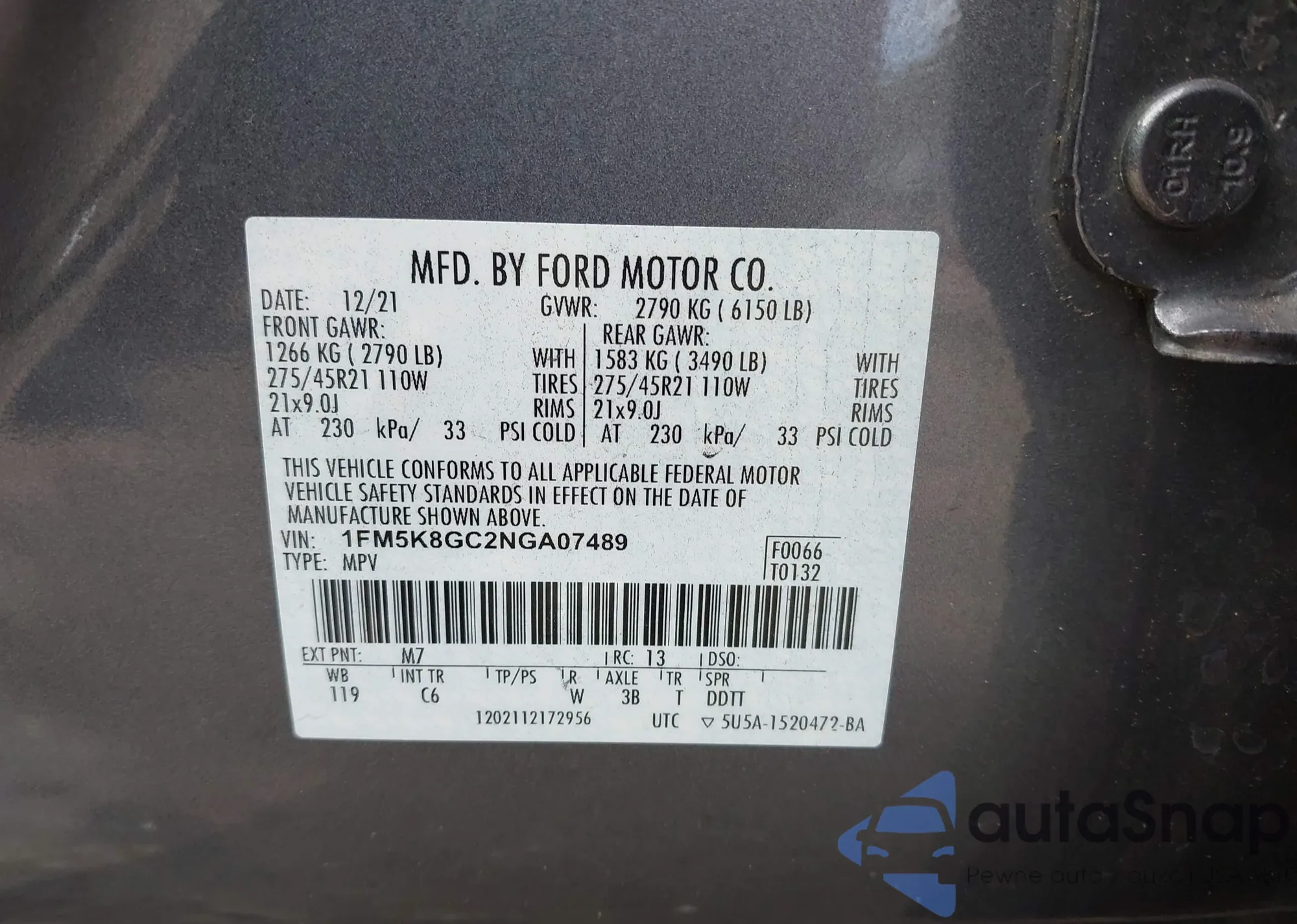 • VIN 1FM5K8DH8HGA09526