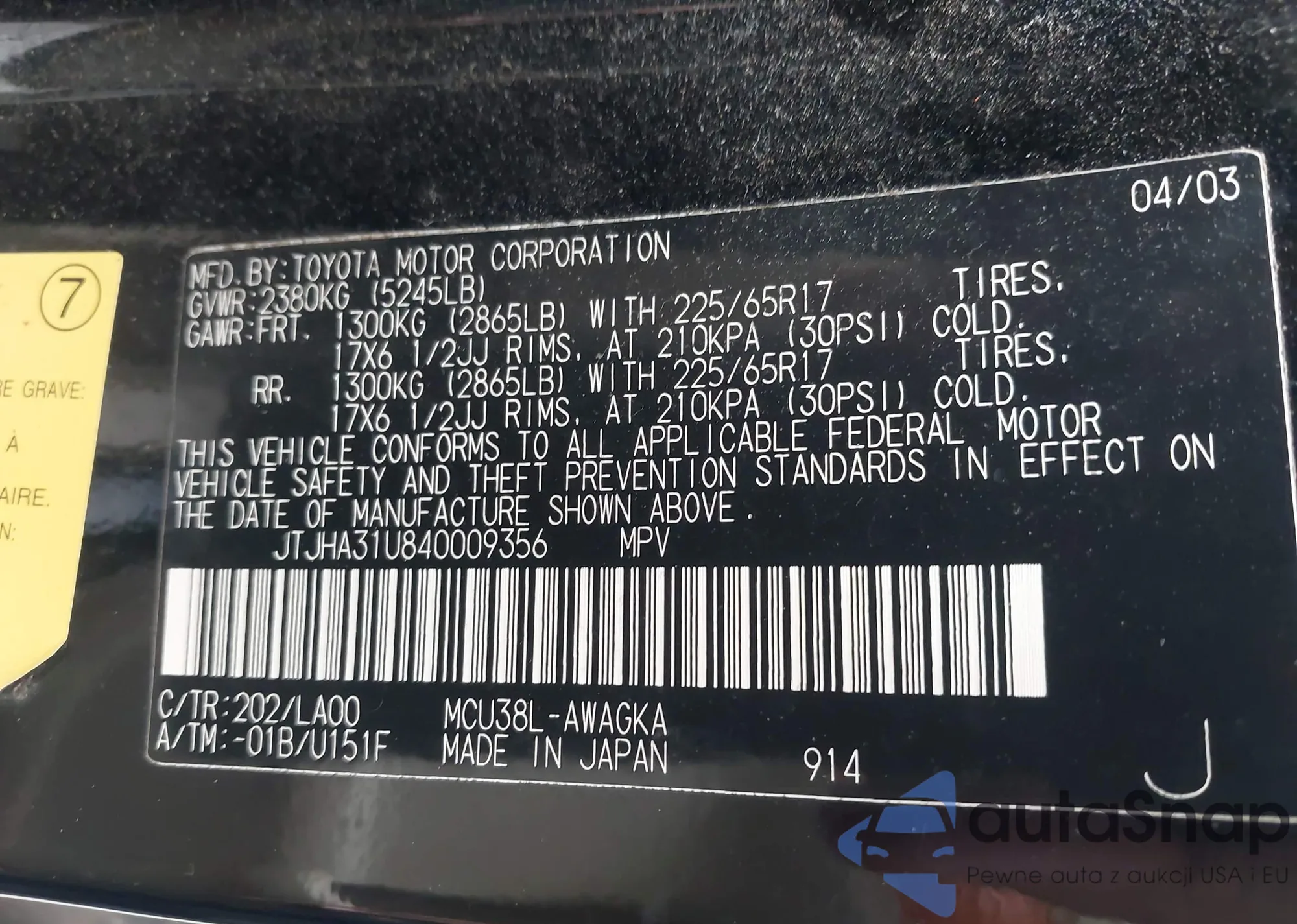 • VIN JTJHA31U840009356
