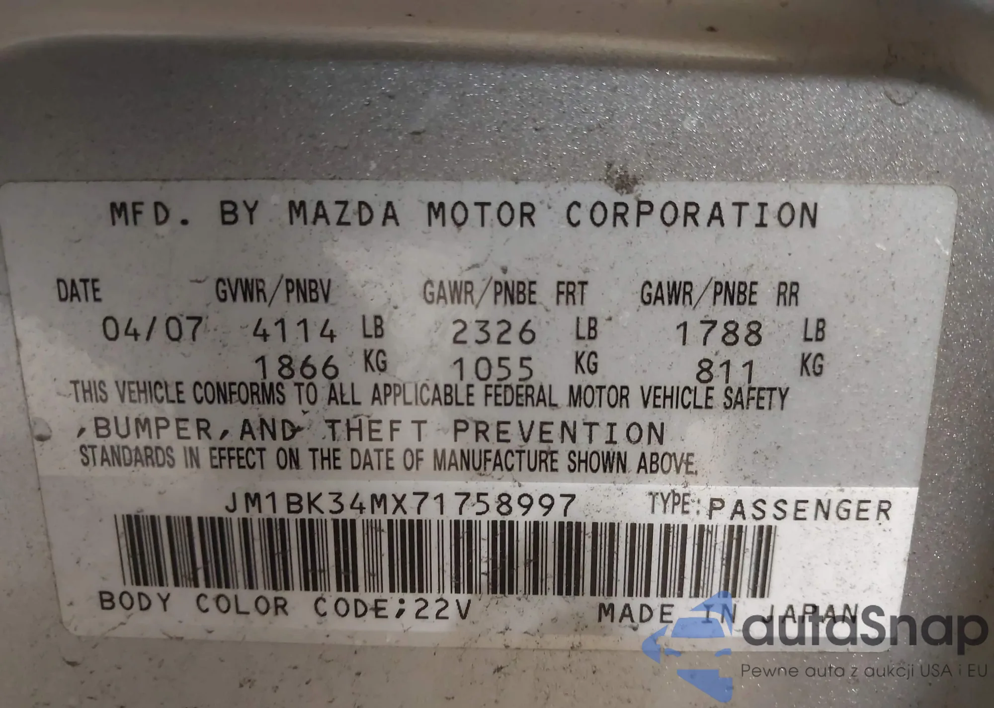 LOT: 43636292 VIN: JF1ZCAC15E8603968