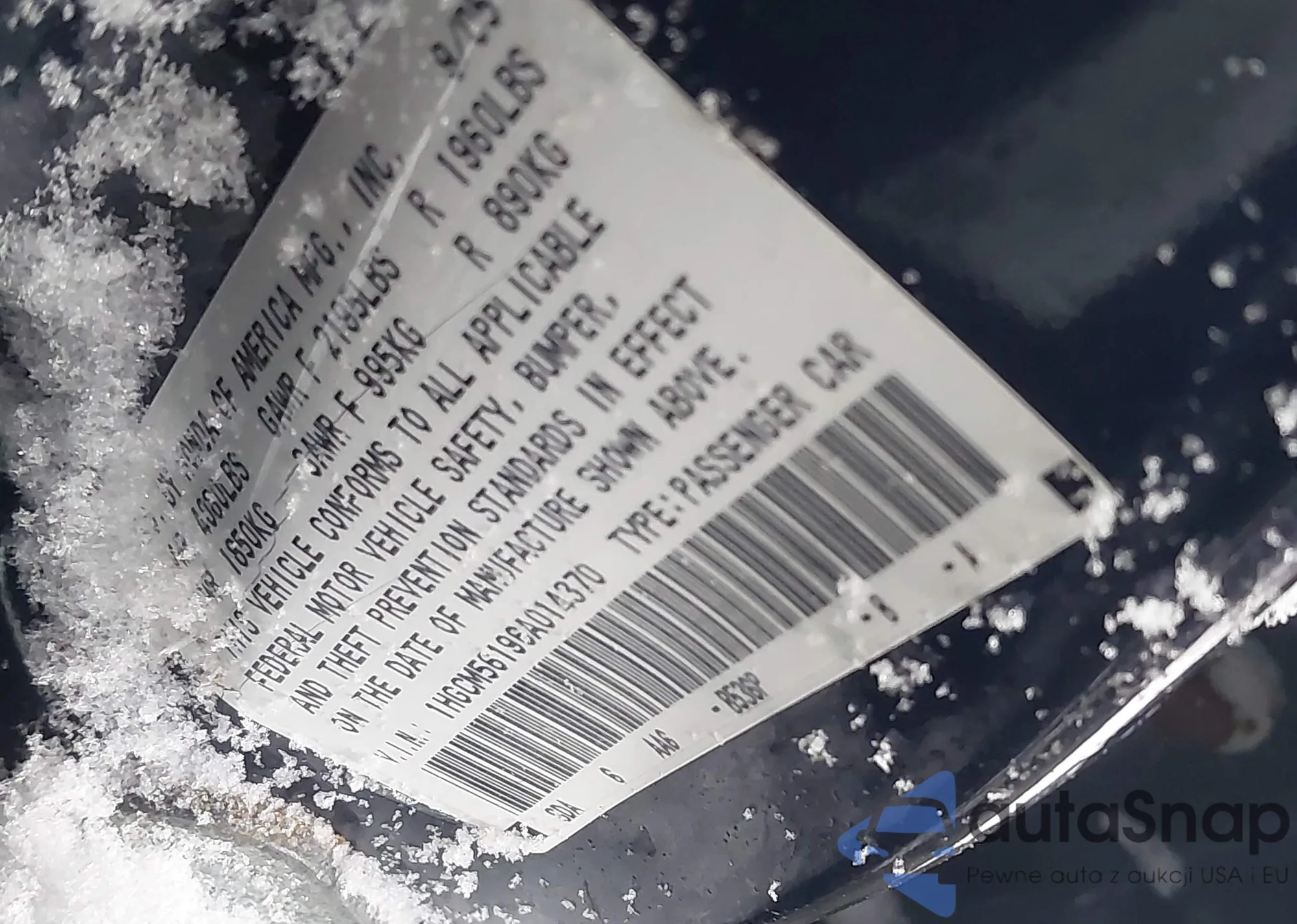 LOT: 44039108 VIN: 1HGCM56196A014370