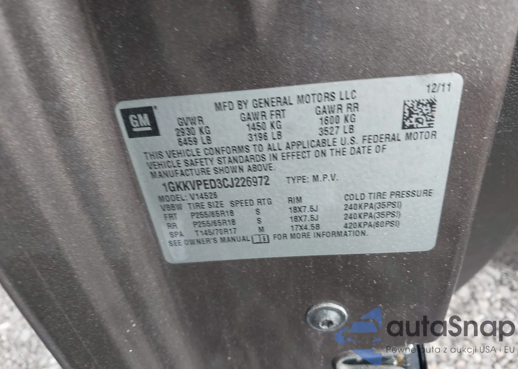 • VIN 1GKKVPED3CJ226972