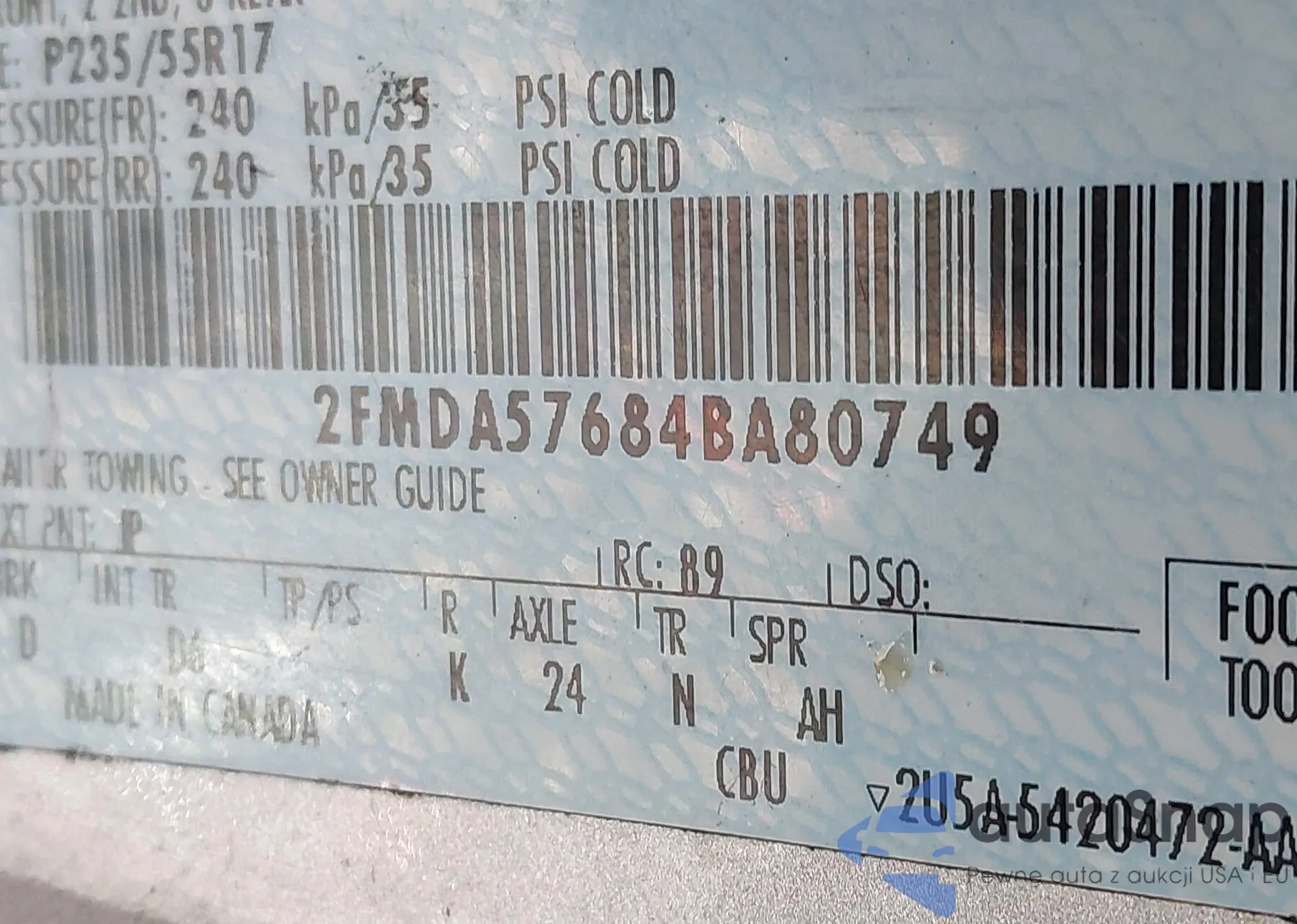 • VIN 2FMDA57684BA80749