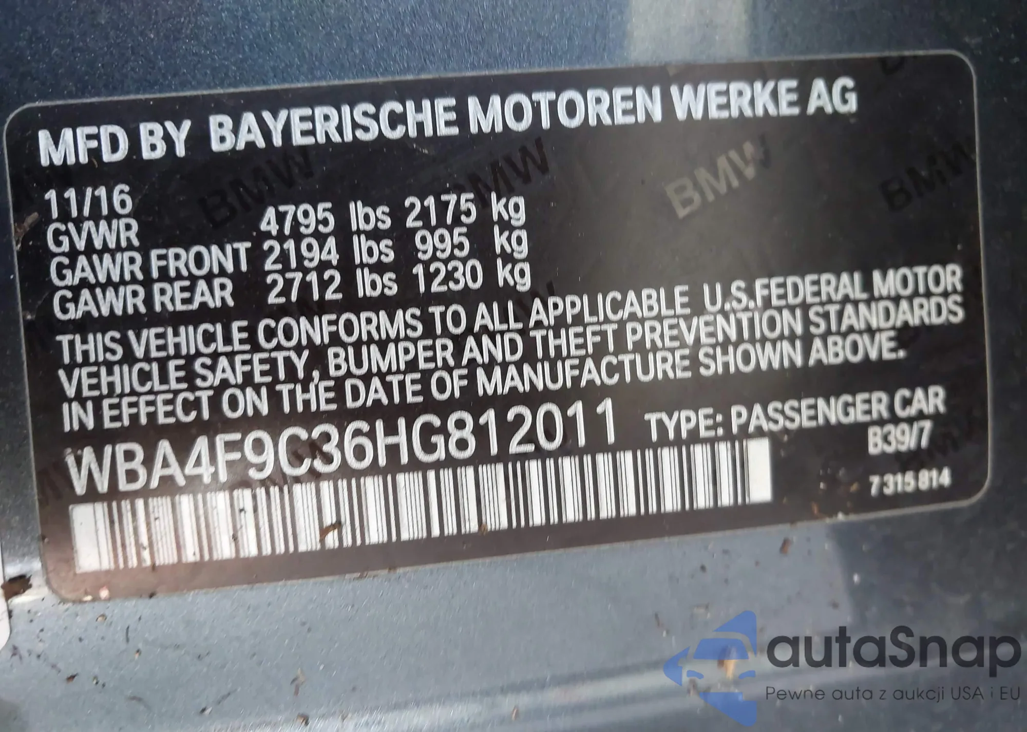 • VIN WBA4F9C36HG812011
