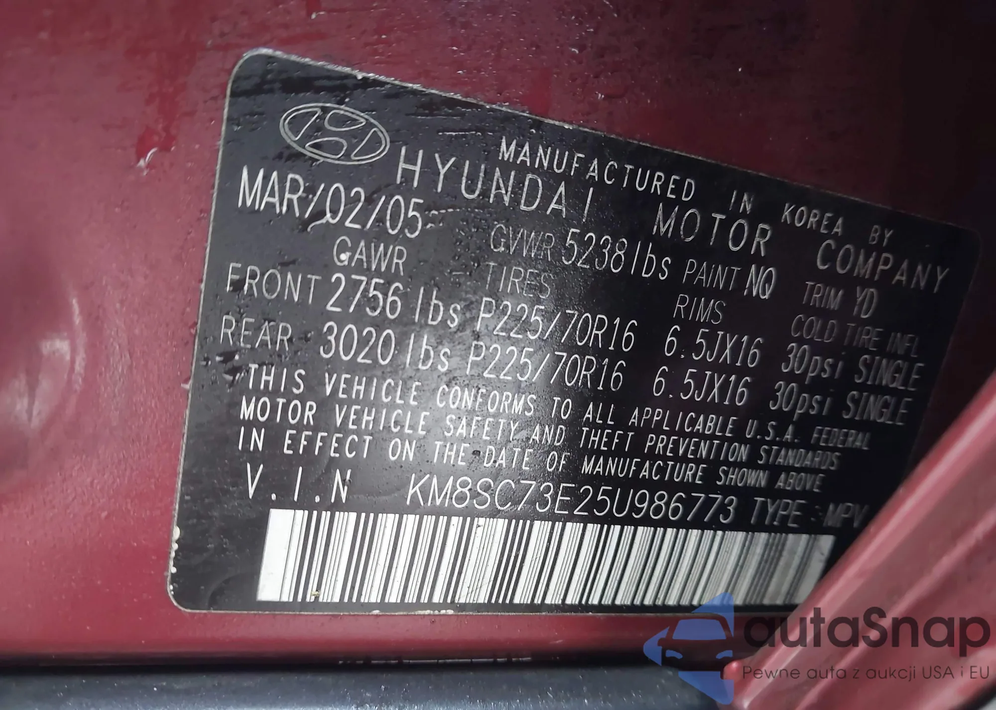 • VIN KMHDN45D83U577275