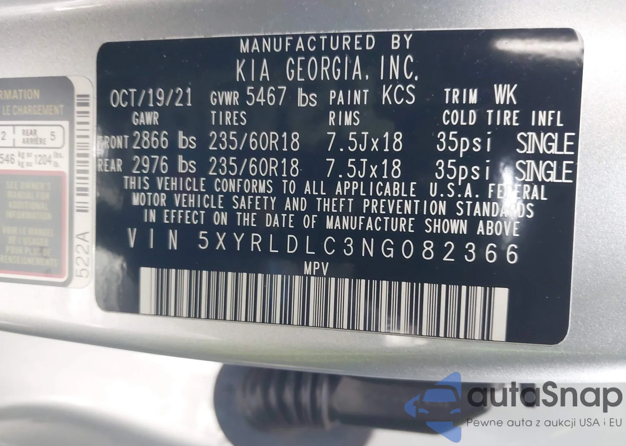 • VIN 5XYRLDLC3NG082366