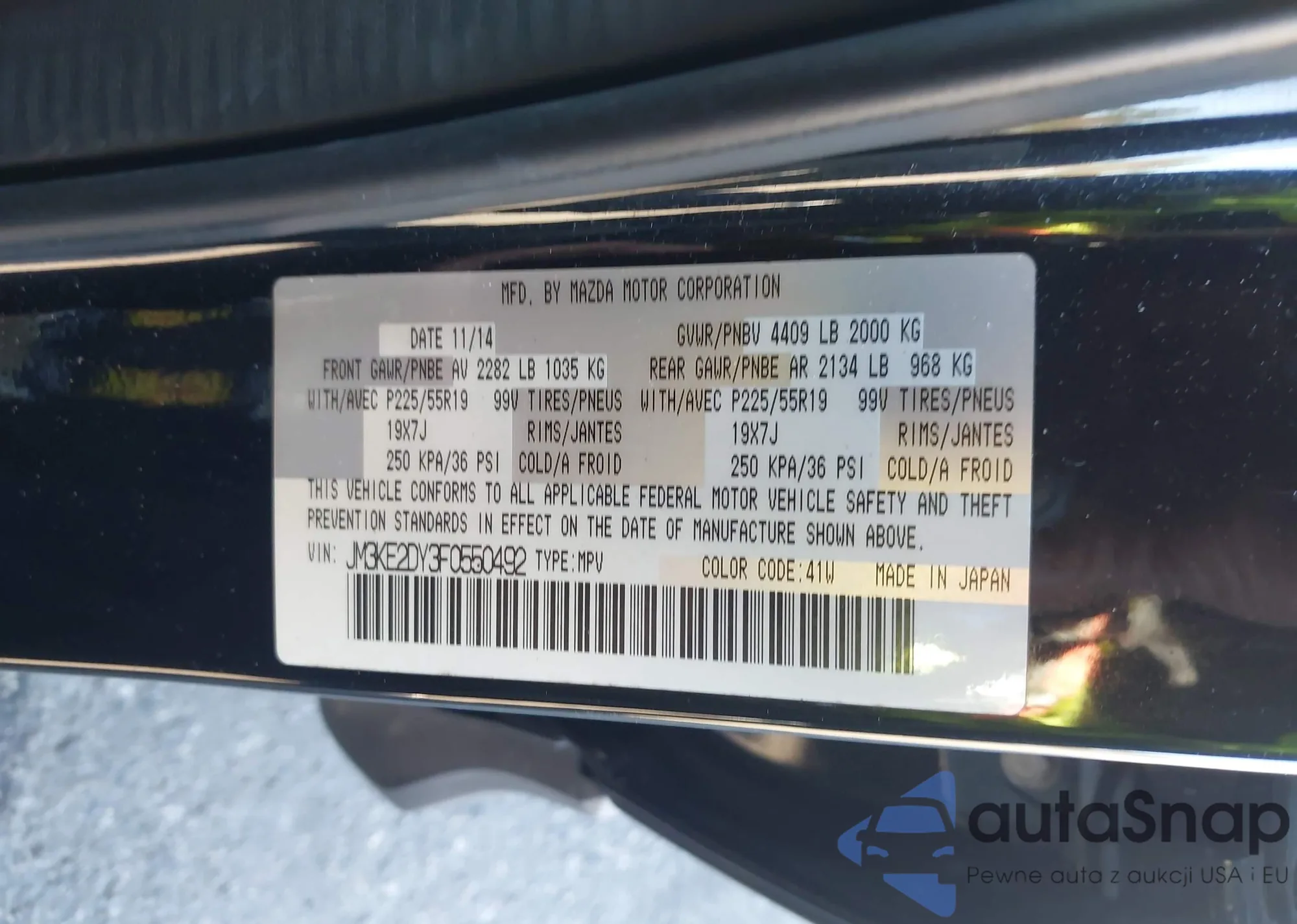 LOT: 43919115 VIN: JM3KE2DY3F0550492