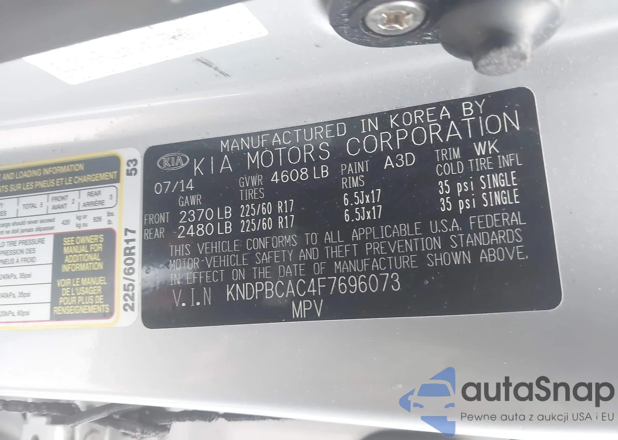 2015 Kia Sportage Lx z USA, uszkodzony, nr VIN KNDPBCAC4F7696073