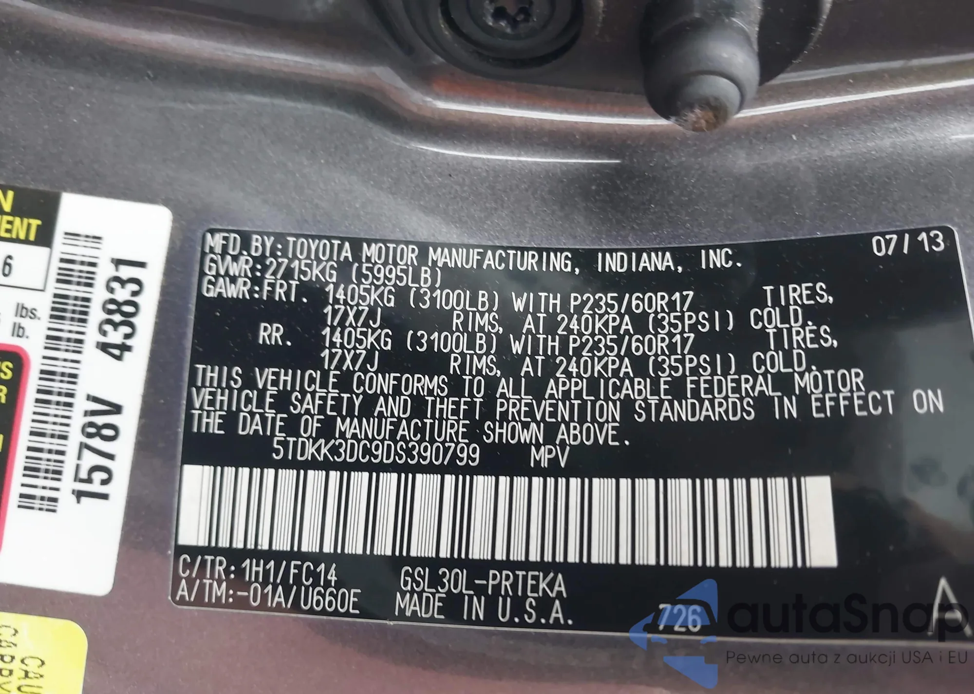 LOT: 43867475 VIN: 5TDKK3DC9DS390799