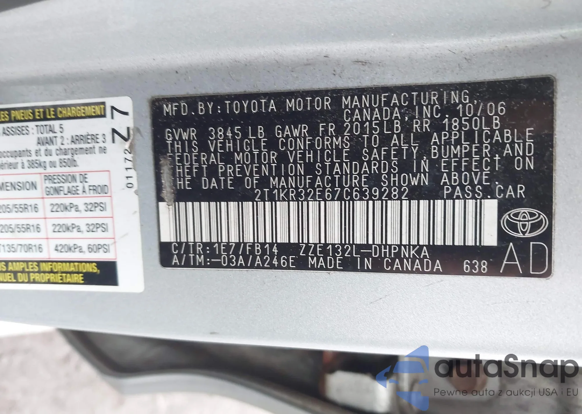 • VIN 2T1KR32E67C639282