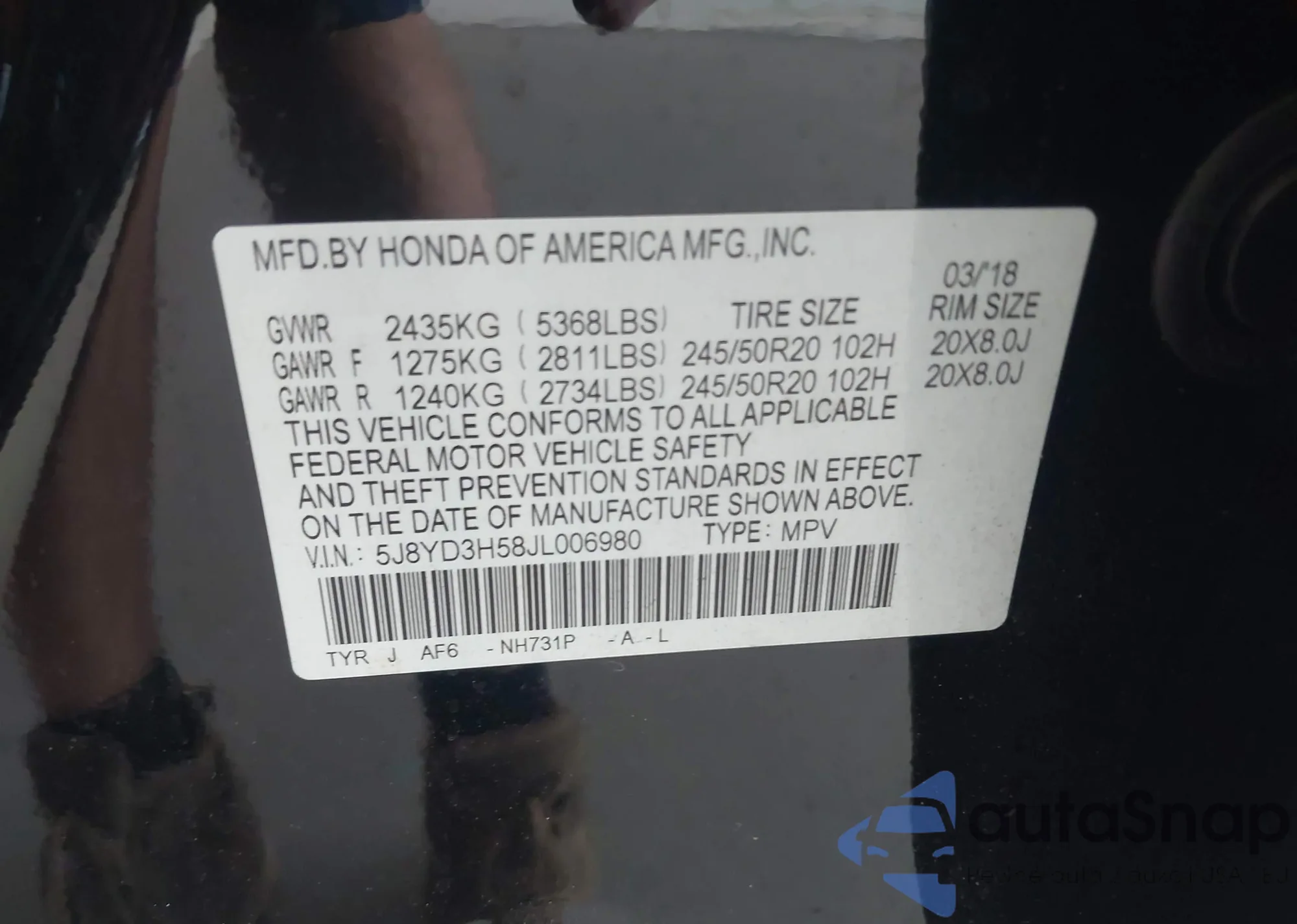 LOT: 43885600 VIN: 2HNYD18242H527924