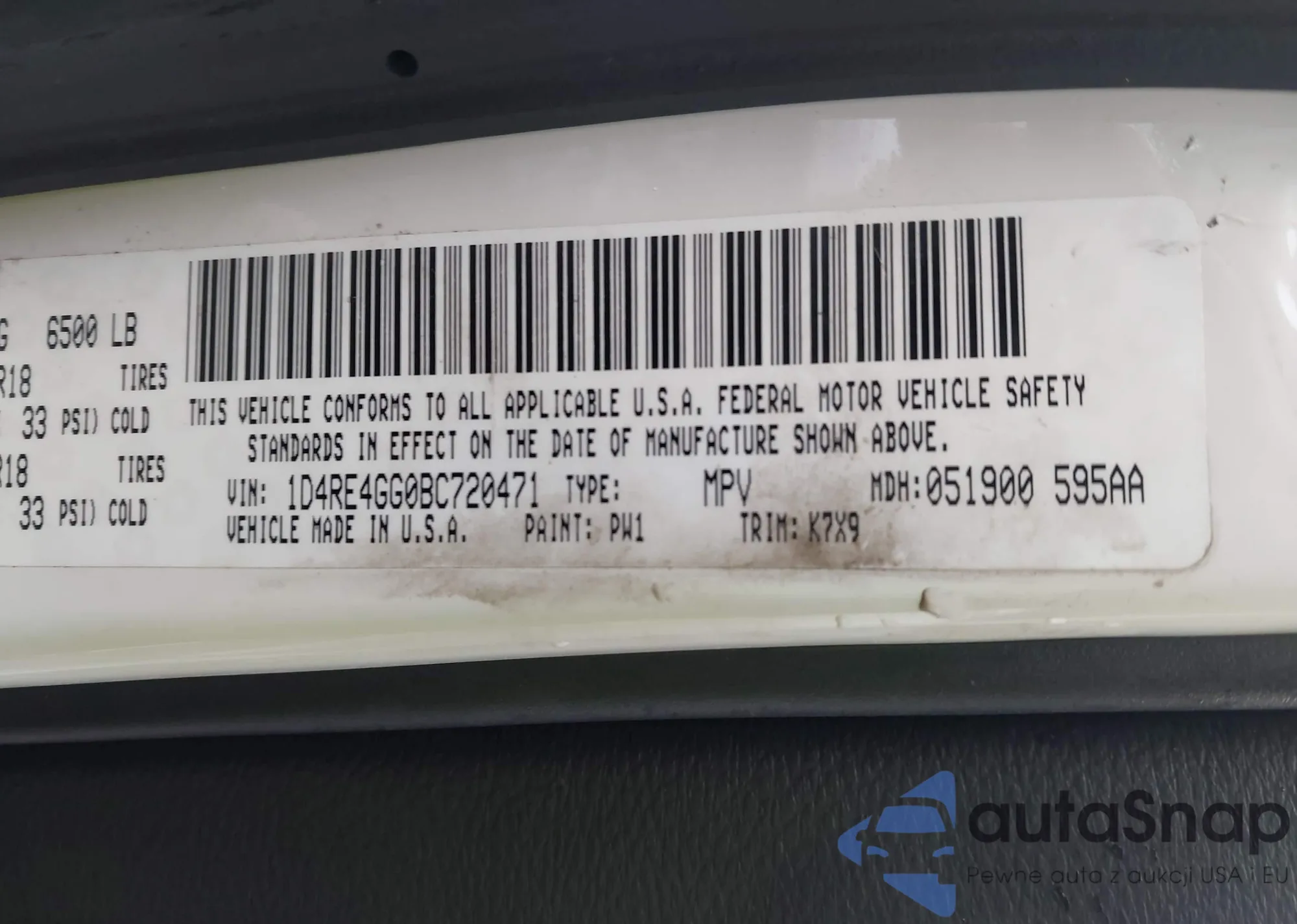 • VIN 1D4RE4GG0BC720471