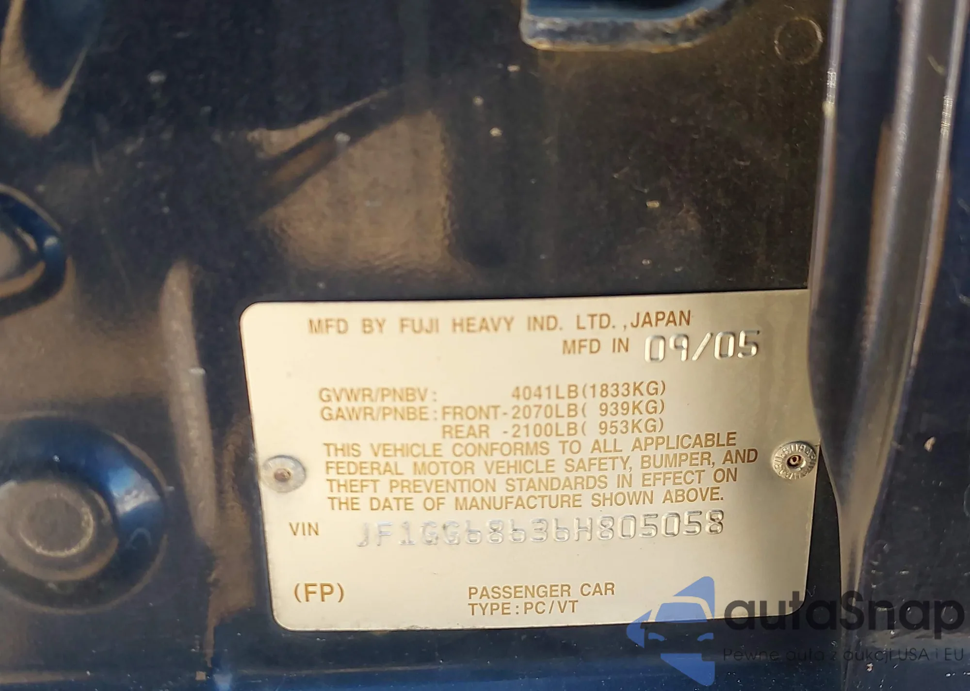 • VIN JF1GG68636H805058