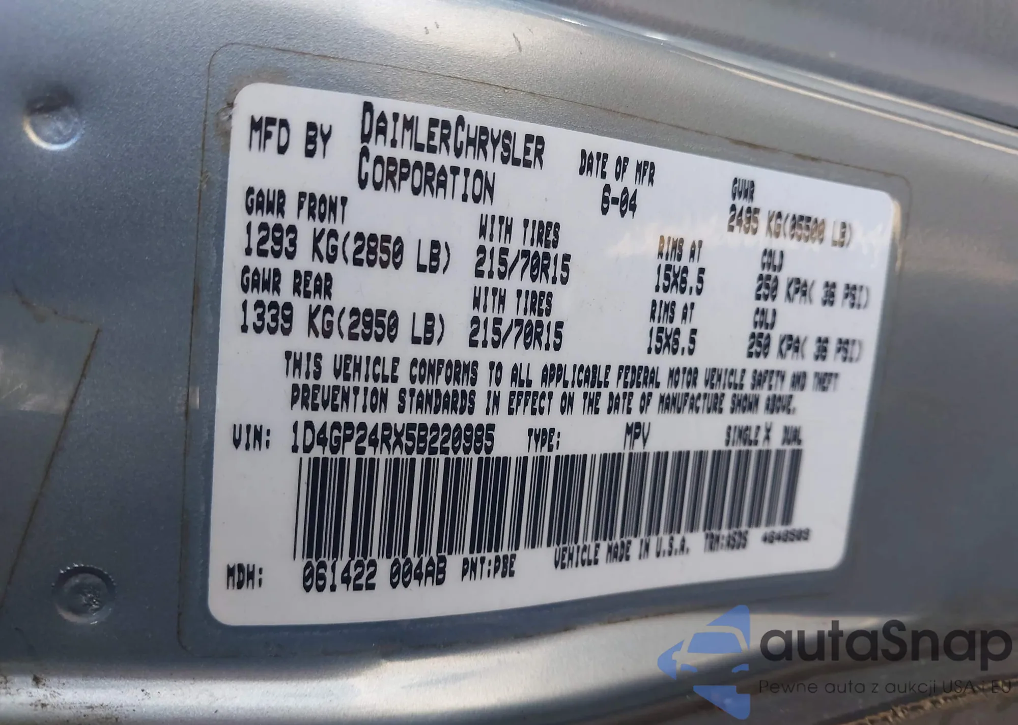 • VIN 5TDAAAB65SS030314