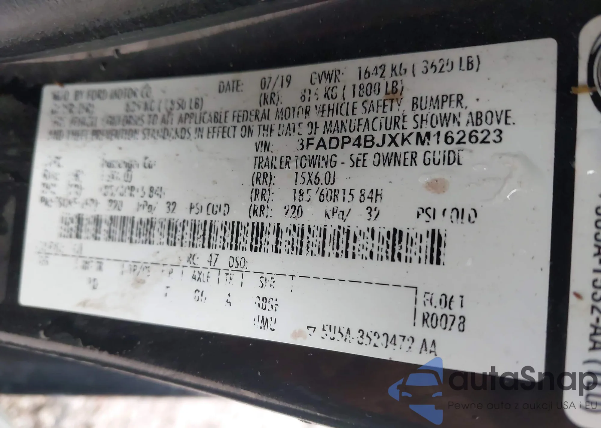 LOT: 43575372 VIN: 3FADP4BJXKM162623