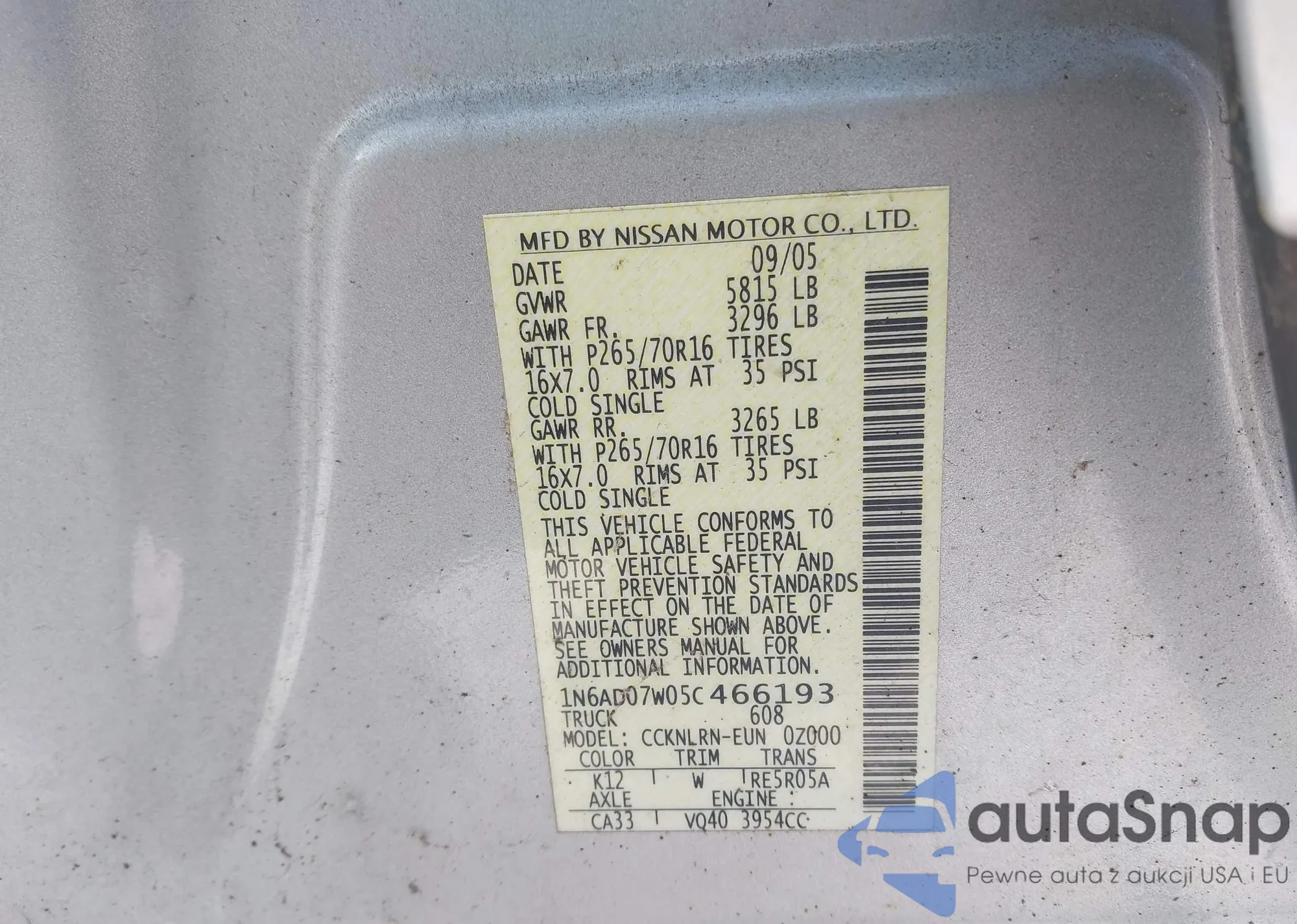 • VIN 1N6AD07W05C466193