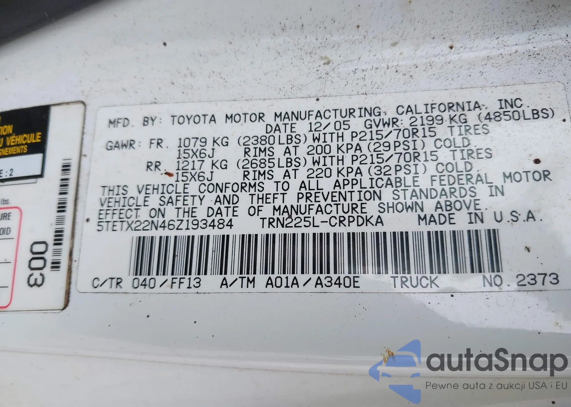 • VIN 5TETX22N46Z193484