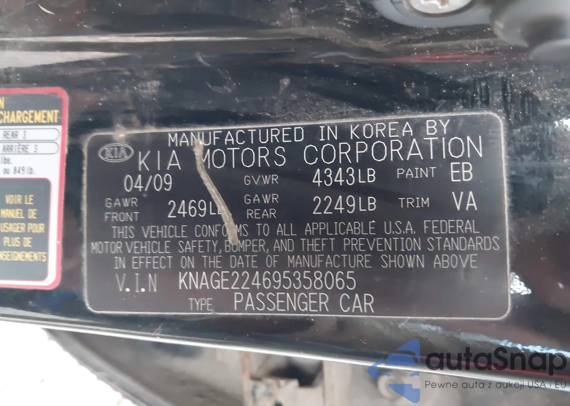 LOT: 44075236 VIN: KNAGE224695358065