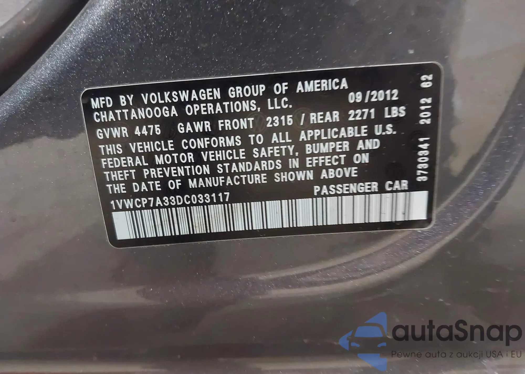 • VIN 1VWCP7A33DC033117