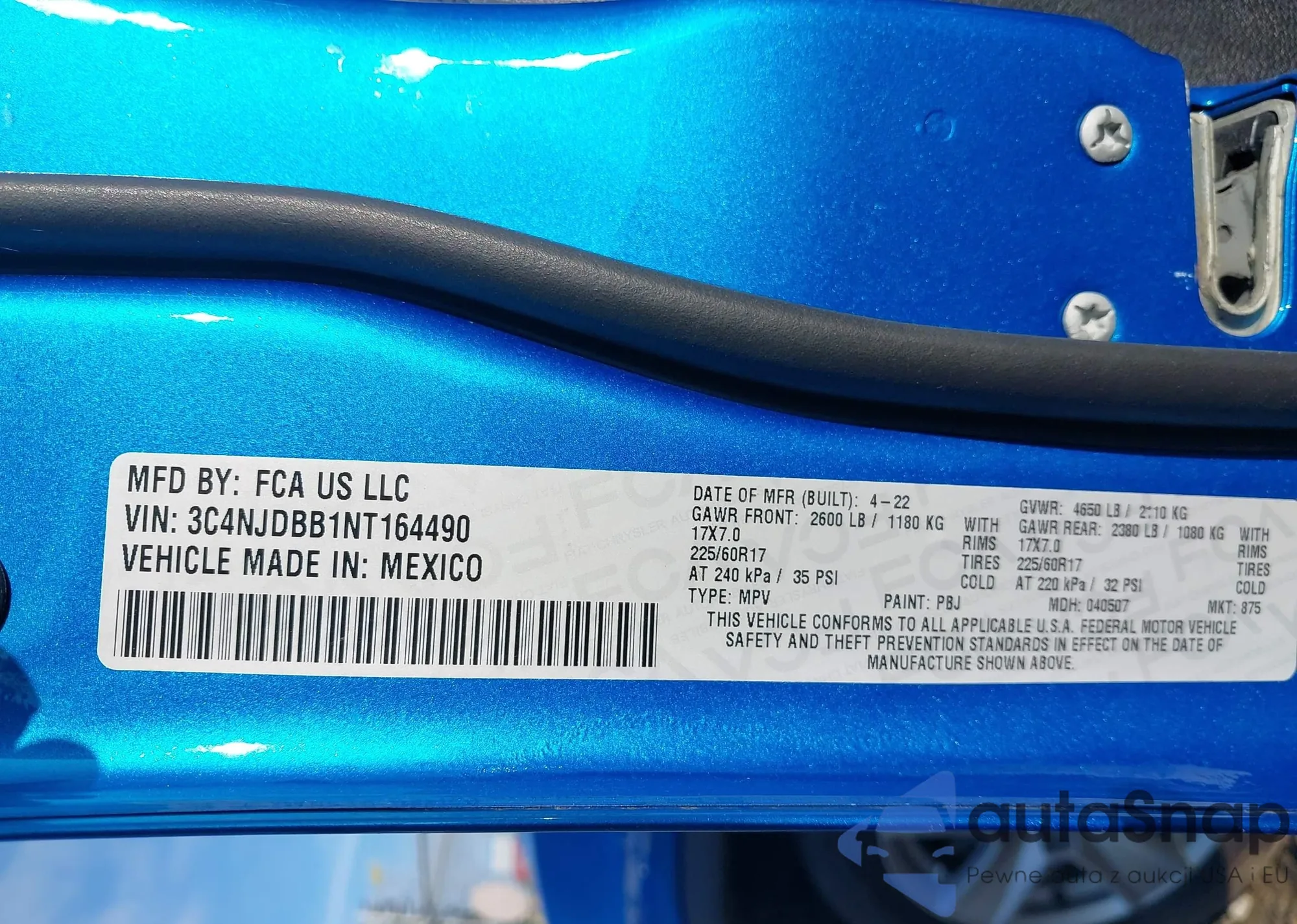 LOT: 42833676 VIN: 3C4NJDBB1NT164490