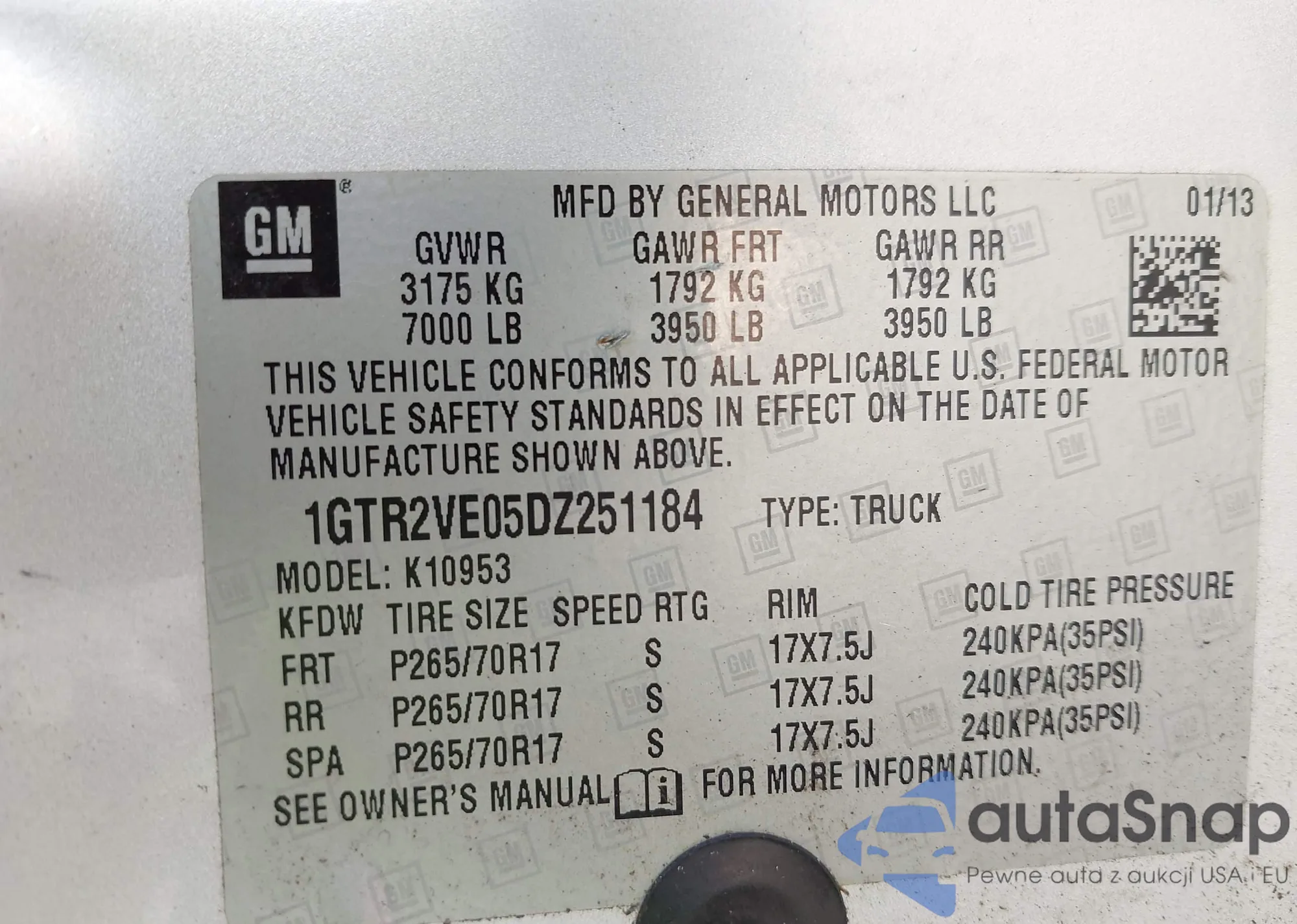 • VIN 1GTR2VE05DZ251184