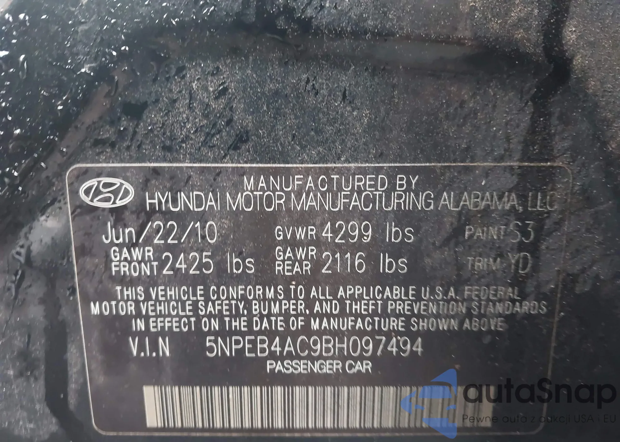• VIN 5NPEB4AC9BH097494