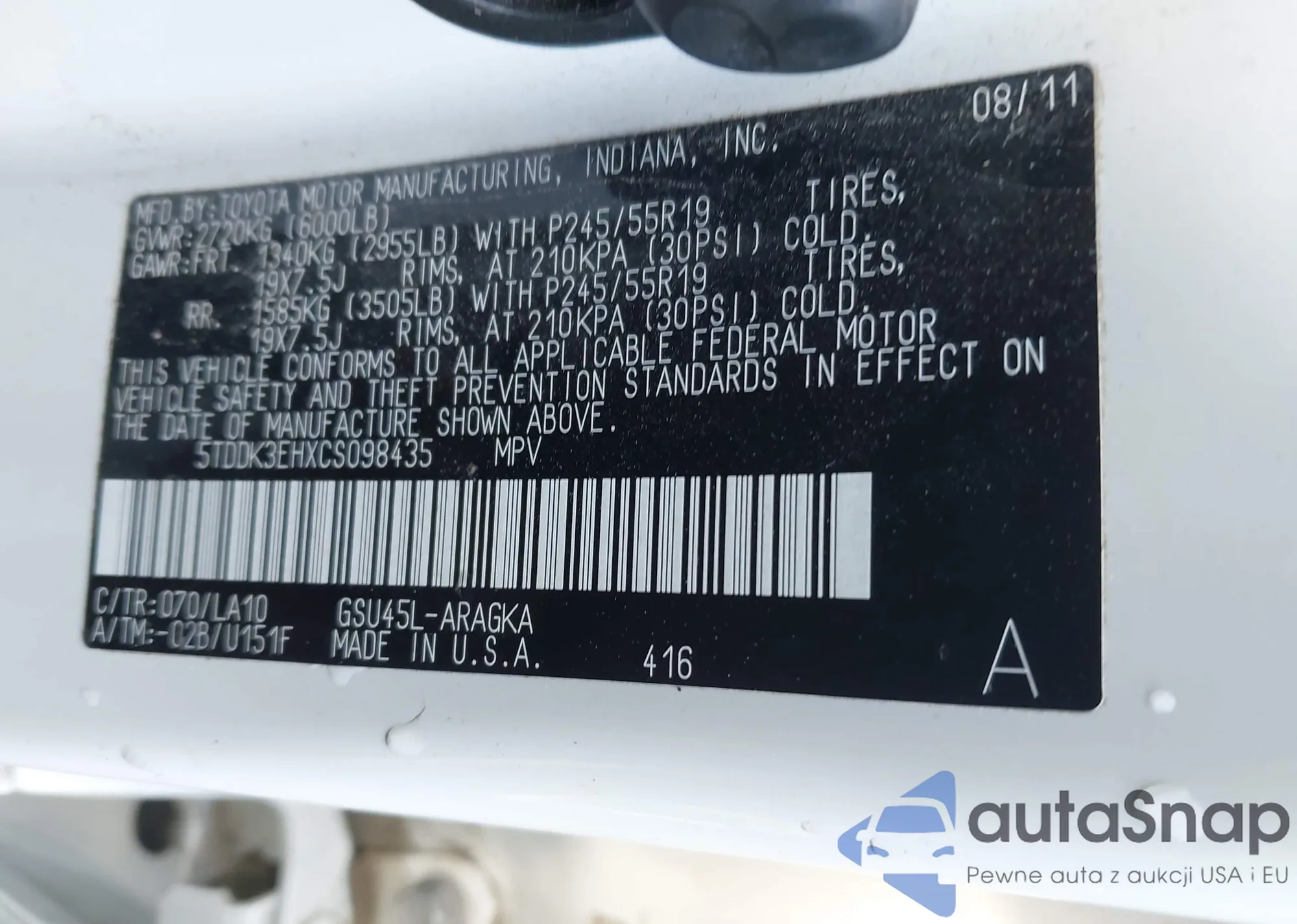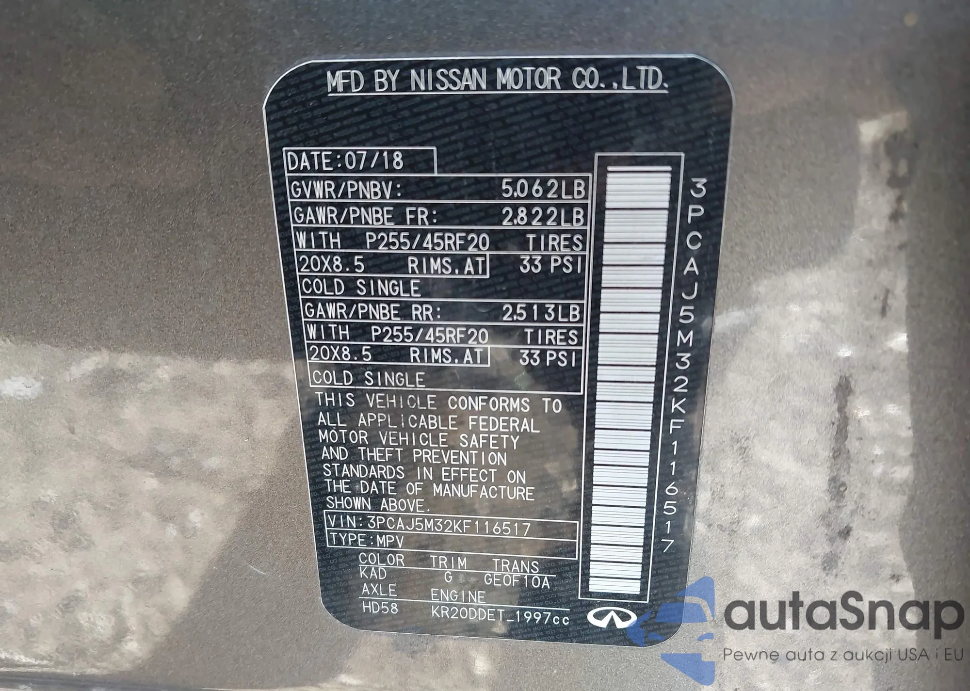 LOT: 44002653 VIN: 1N4BL4DVXRN356880